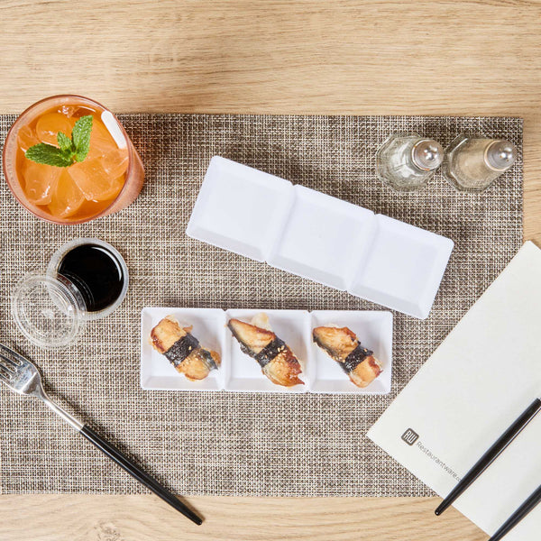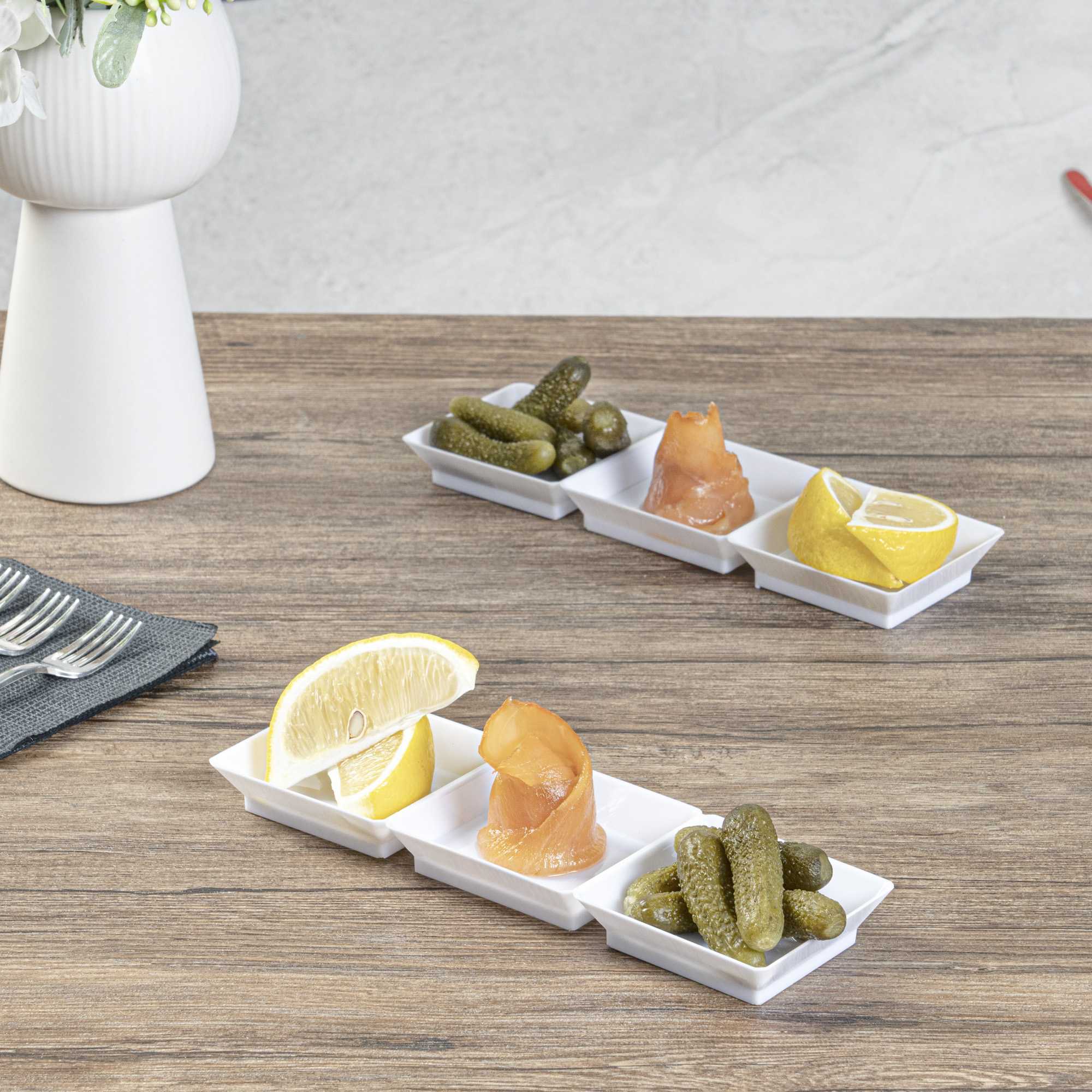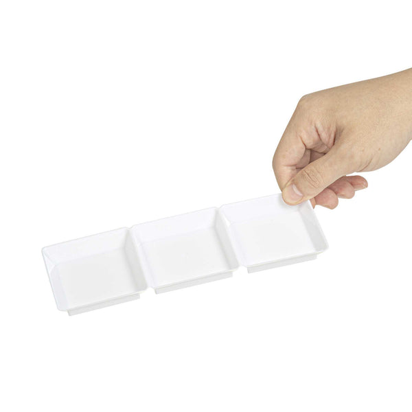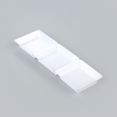 RECTANGLE WHITE PLASTIC TERZETTO MINI PLATE - 3 COMPARTMENTS