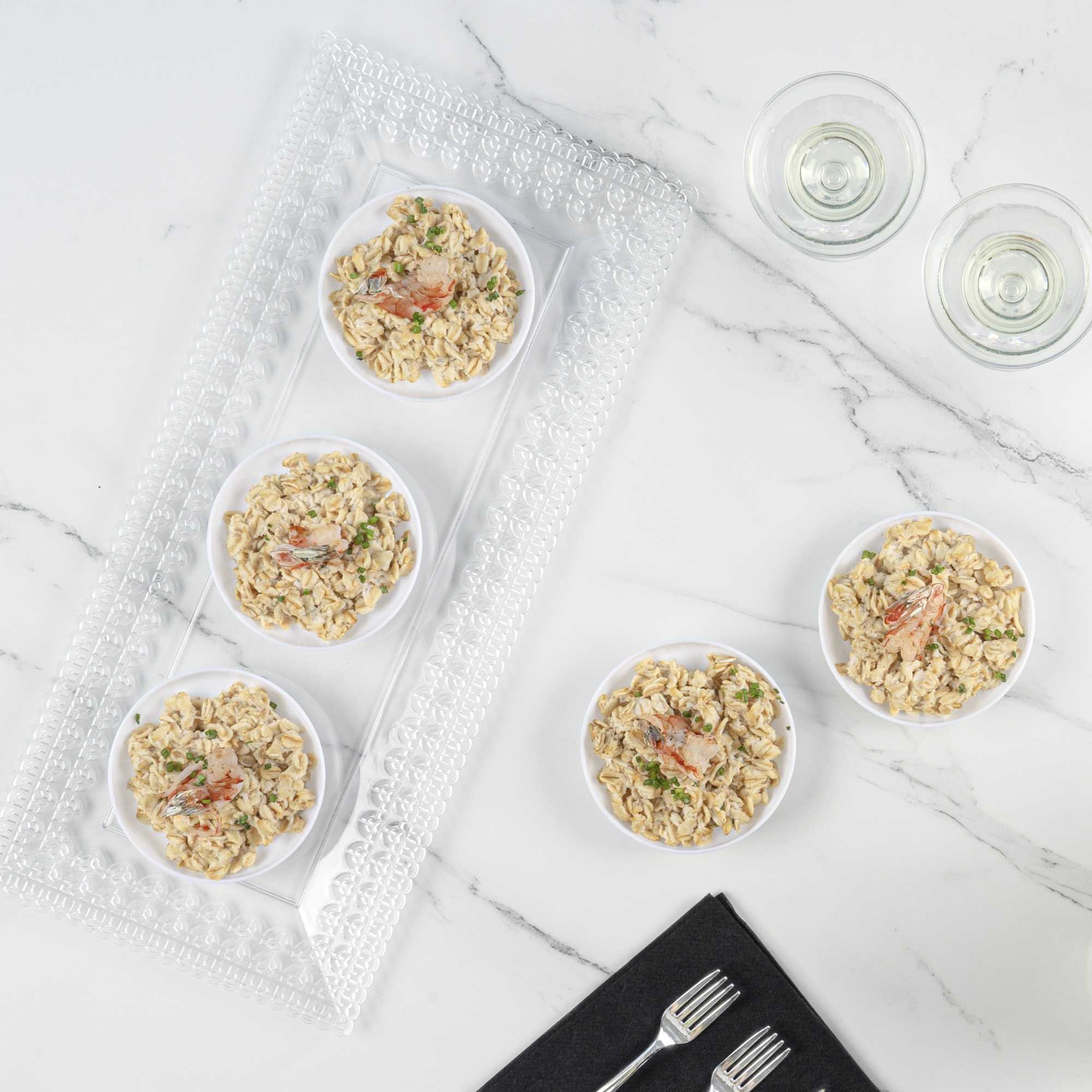 - Raised edges carefully contain food, preventing appetizers from falling out