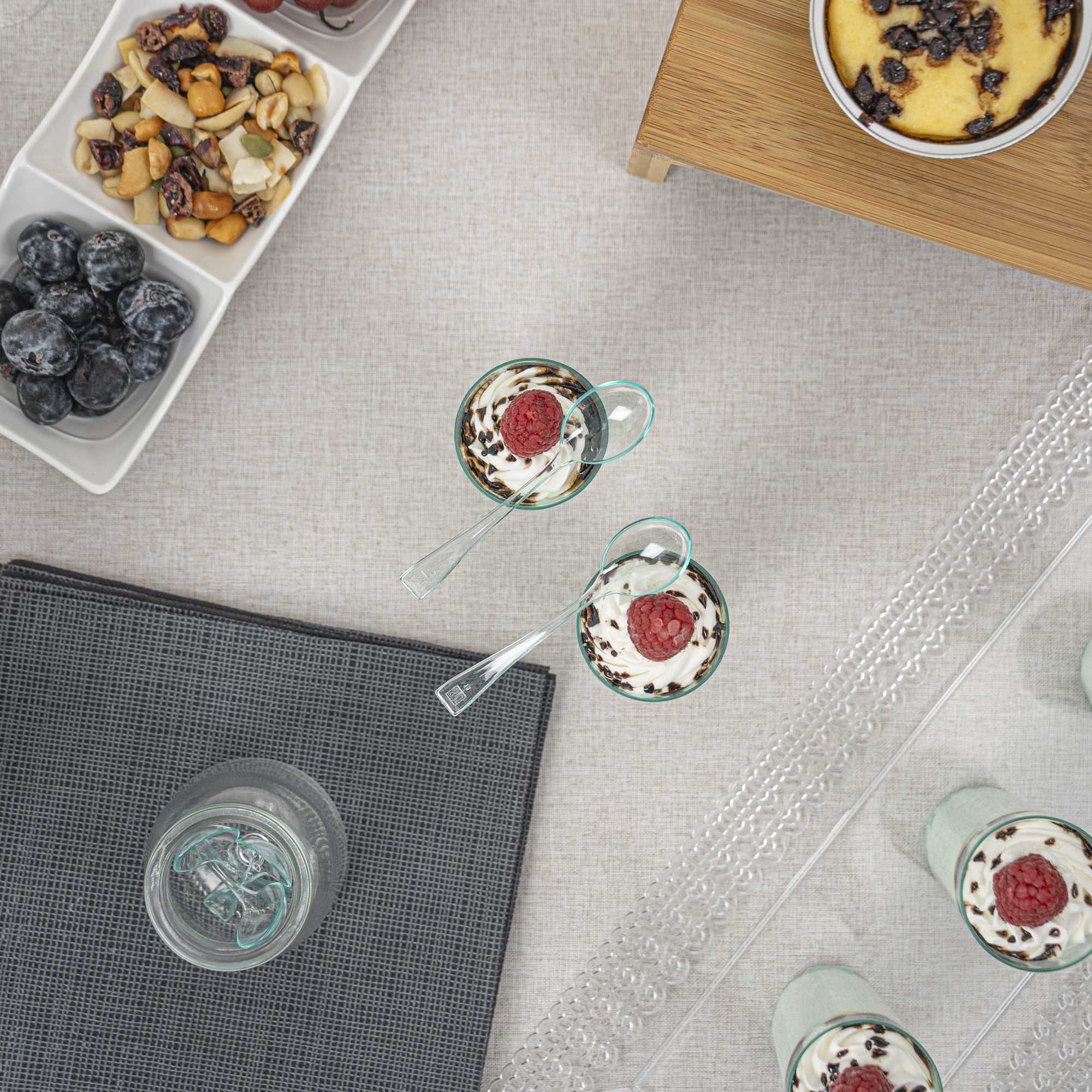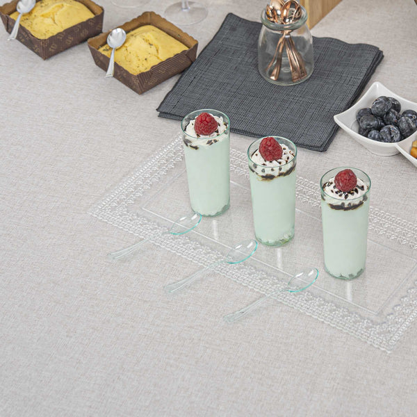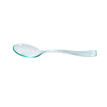 Perfectly blend functionality with sustainability using our Mini Serve Seagreen Plastic Mini Spoons. Featuring a glass-like translucent finish, these seagreen plastic spoons are designed to effortlessly enhance the presentation of your tantalizing dishes. Made of premium plastic, these premium mini spoons are recyclable. With durable construction, these disposable plastic spoons are sturdy and do not break while holding hefty bite-sized treats. Ideal for busy cafes and food establishments, these sturdy spoons can be disposed of after use and require no cleaning. Each spoon for mini desserts measures 4 inches in length. Sold in a 500 count box.