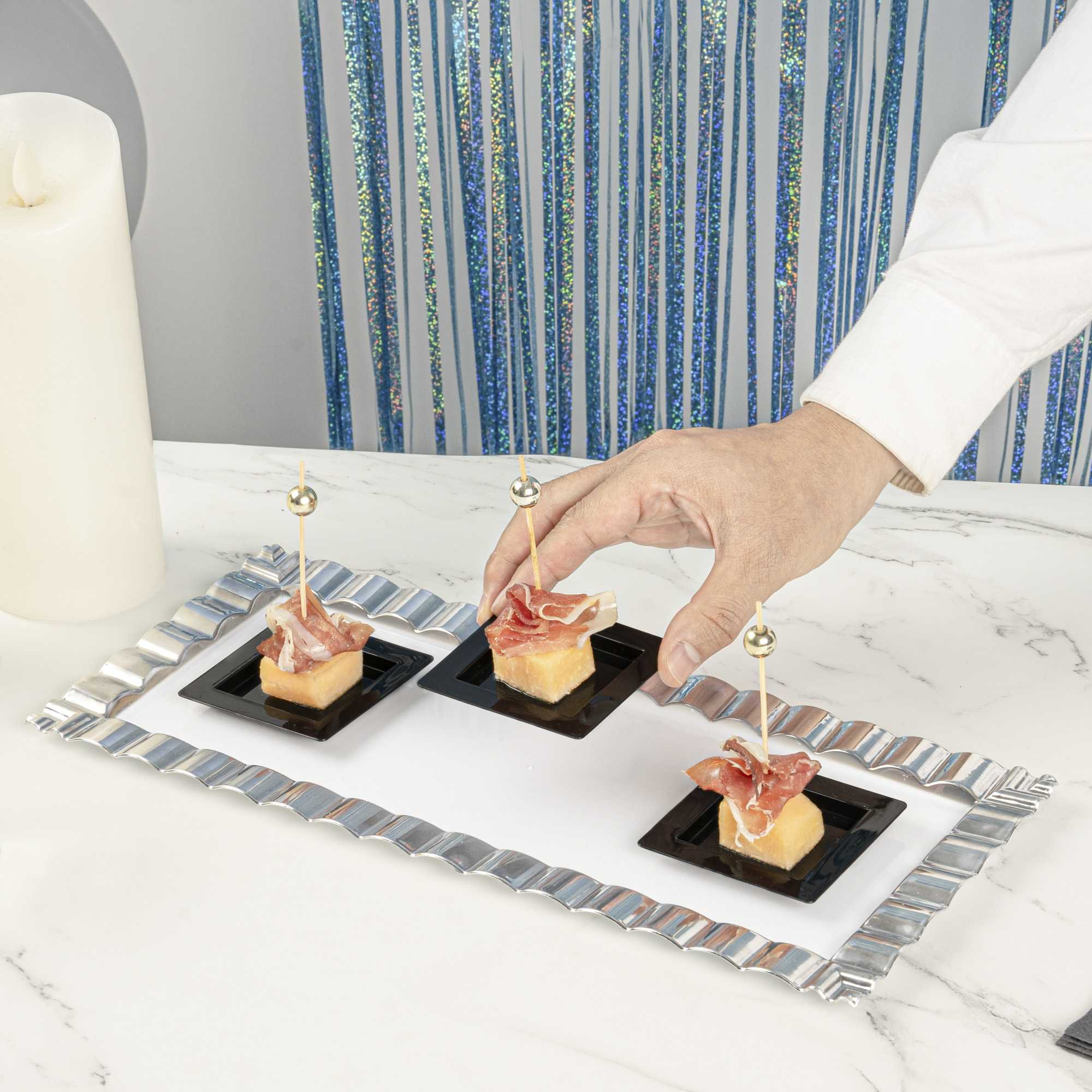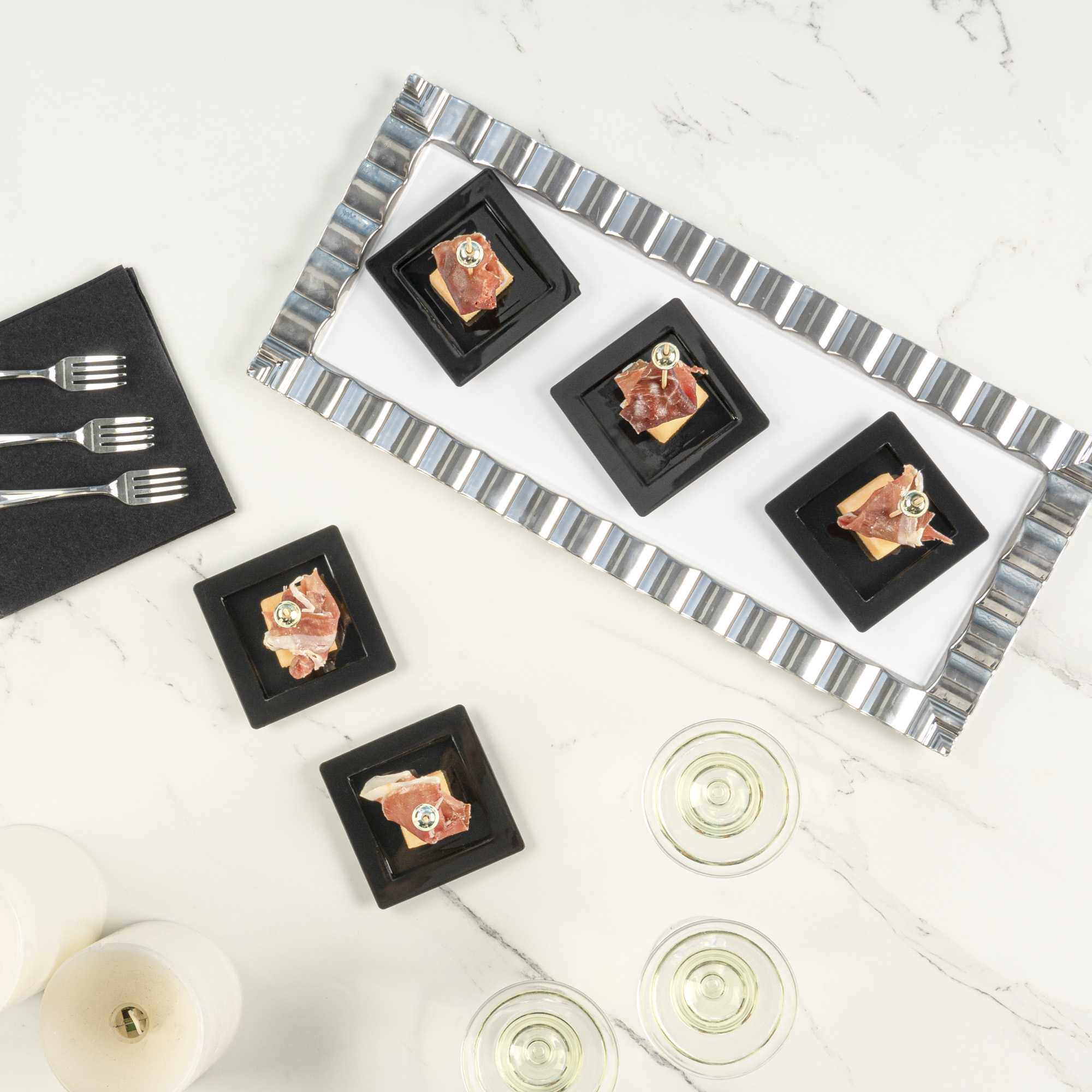 - Square shape elegantly upgrades the look of the appetizers and desserts