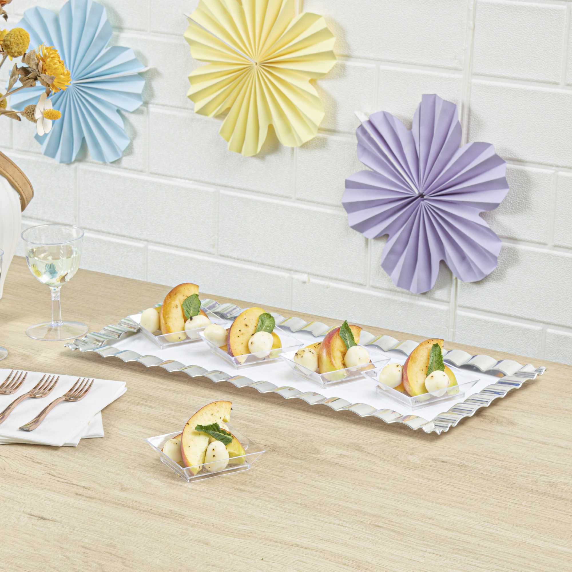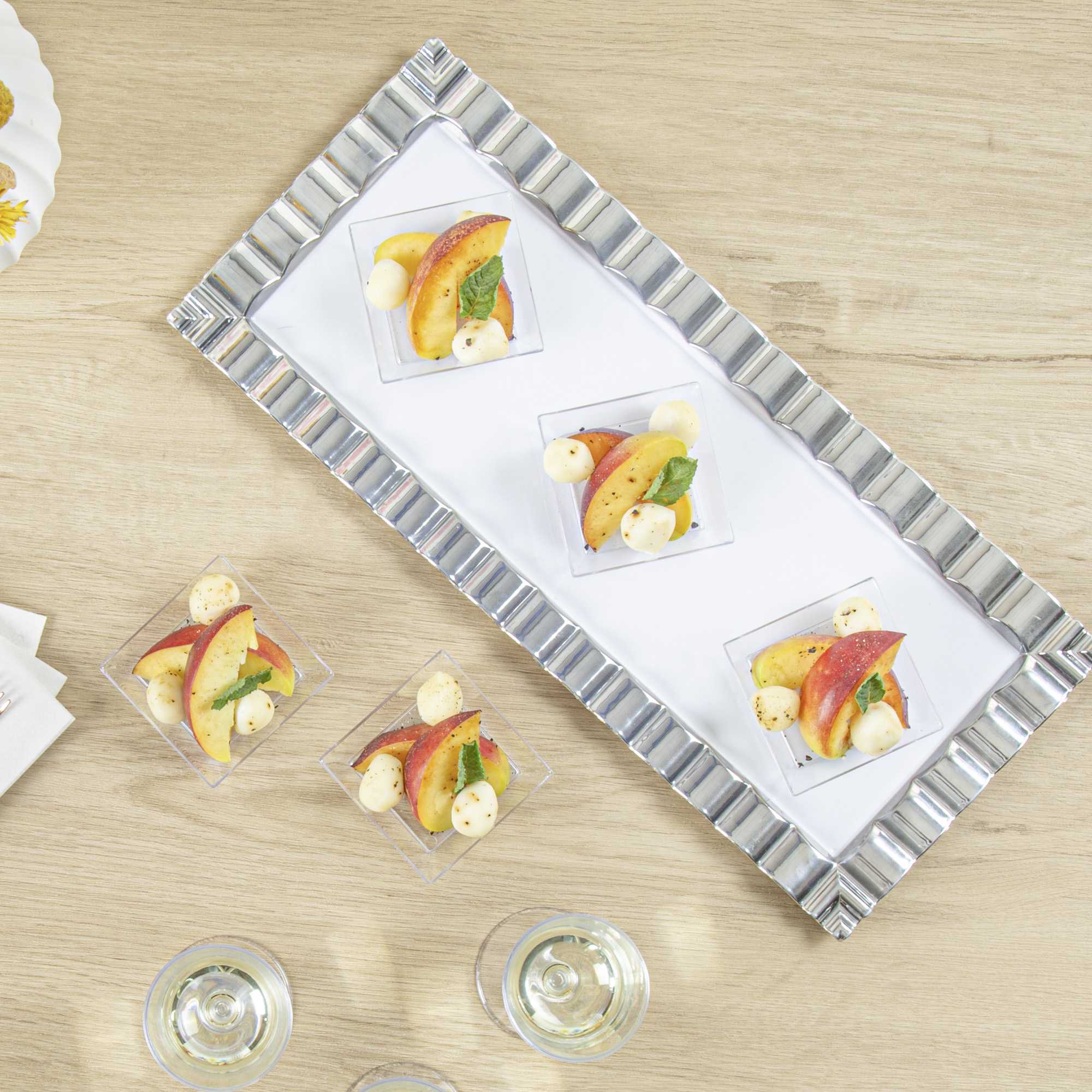 - Square shape gives an elegant look to your bite-size appetizers