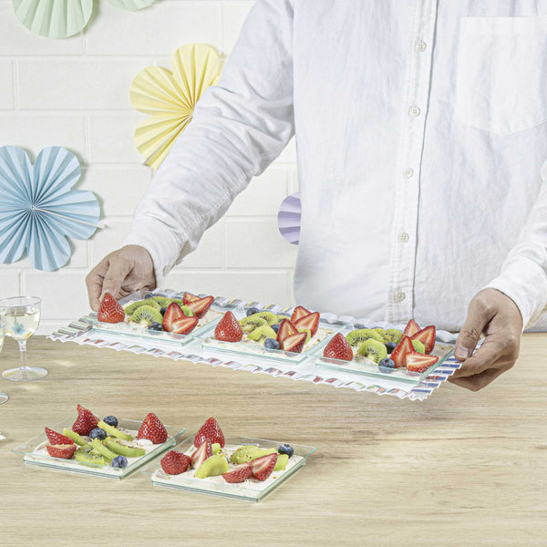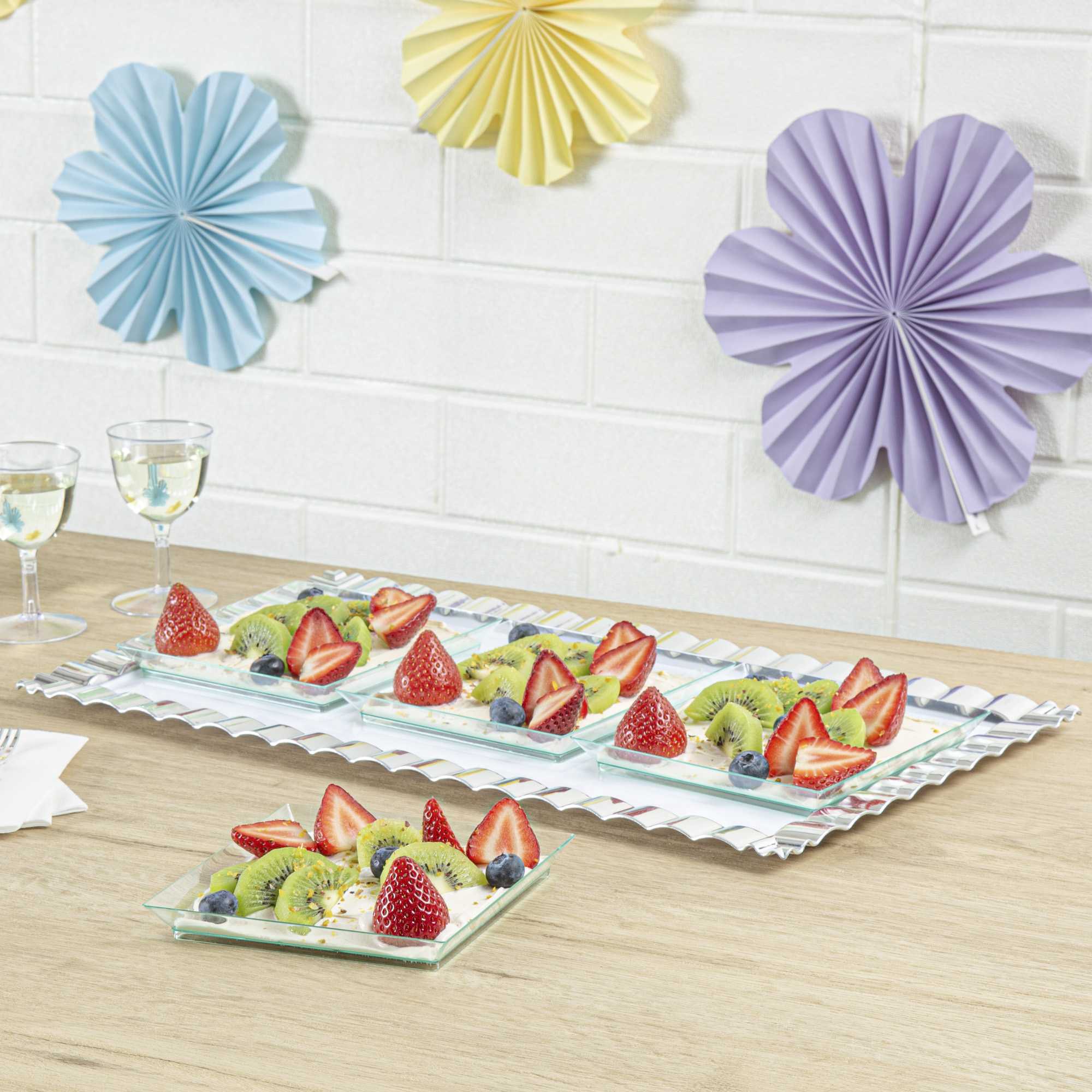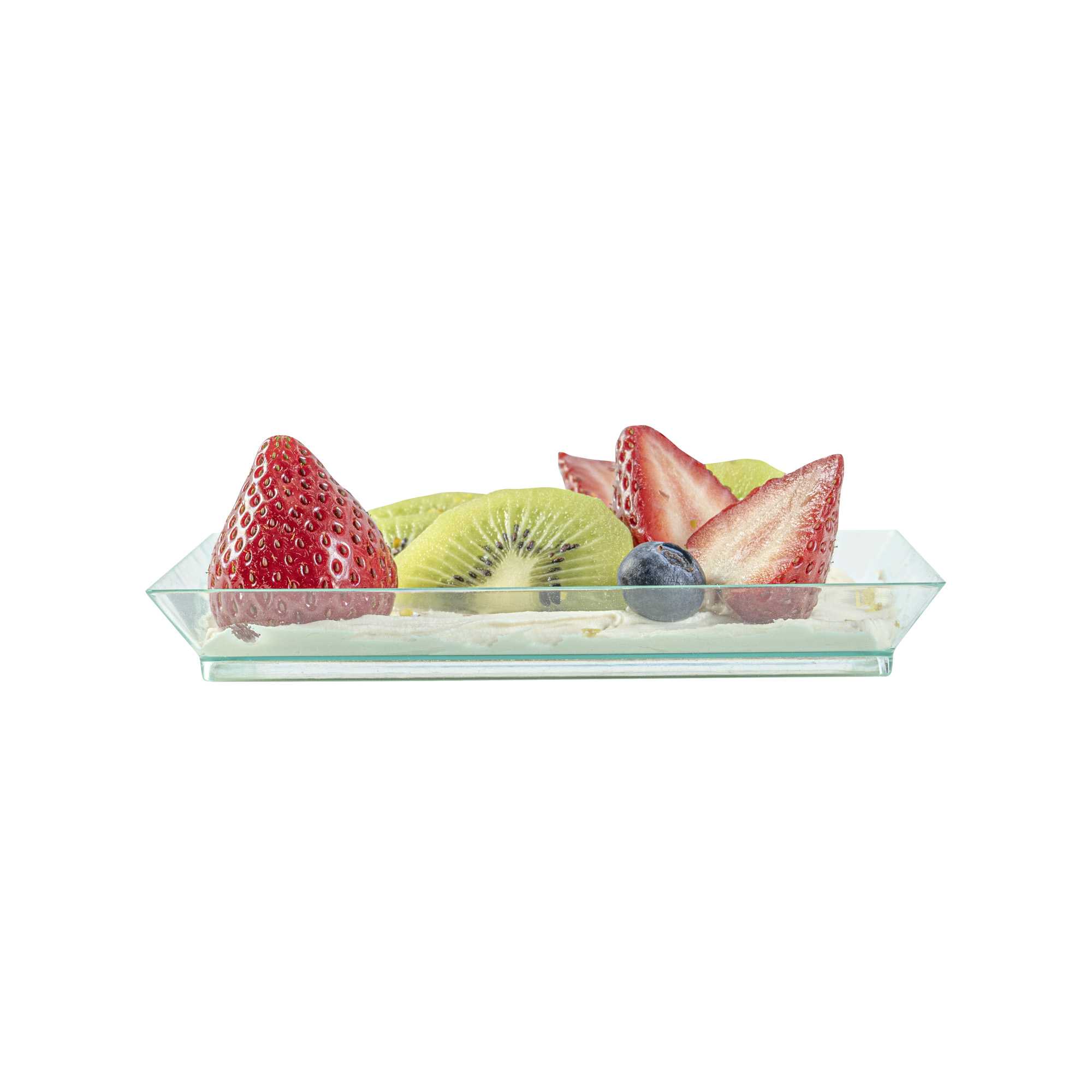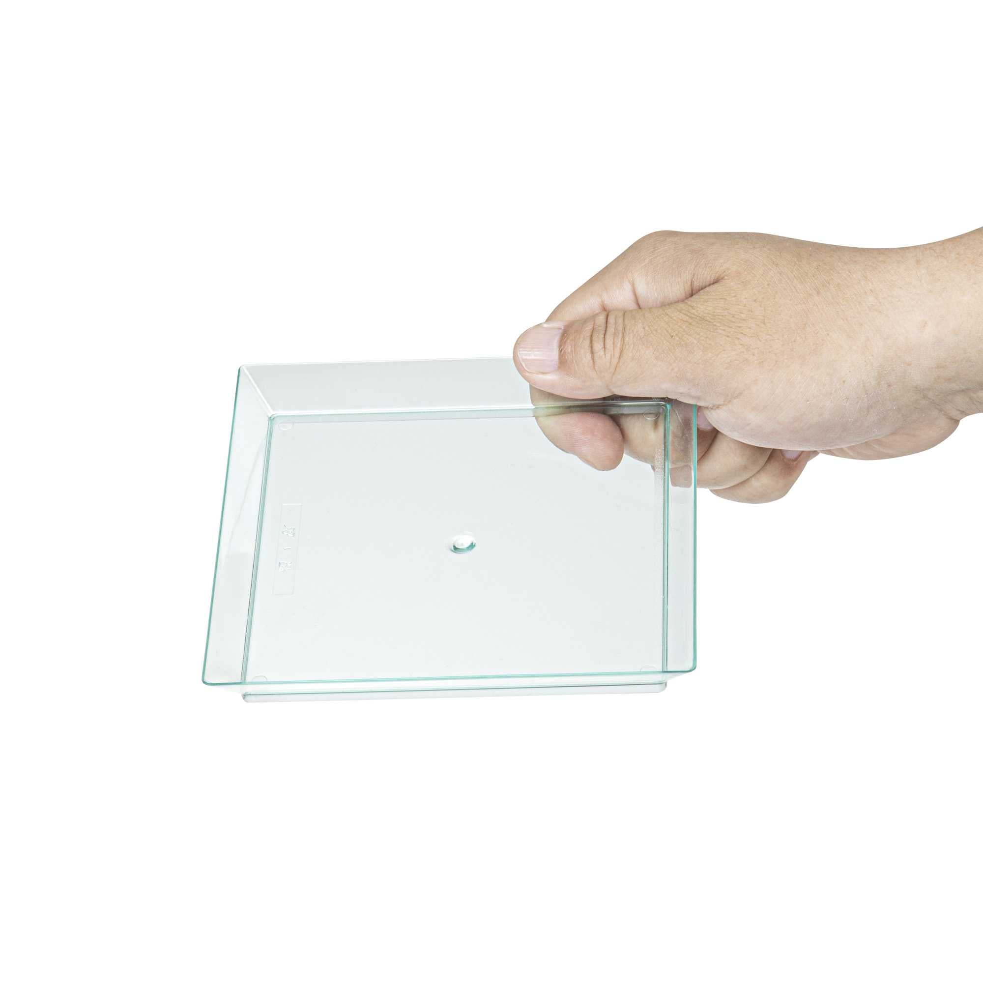 Enhance your dining settings with our Mini Serve Square Seagreen Plastic Medium Modern Plates. Made from plastic, these appetizer plates are highly durable, eliminating worries about chips or breaks during use. For a smooth after-event clean-up, these seagreen appetizer plates are conveniently disposable. Striking for their distinctive square shaping and raised edges, these disposable plastic plates not only prevent food displacement but also amplify presentation. Constructed from premium plastic, these appetizer plates for parties accommodate a variety of food types. Perfectly suited for appetizers and other small meals, the transparent seagreen tint of these stylish plates effortlessly enhances the aesthetic appeal of your cuisine. Measuring 5 inches in length by 5 inches in width, these disposable plates add a touch of grace and convenience to your servings. Sold in a 100 count box.
