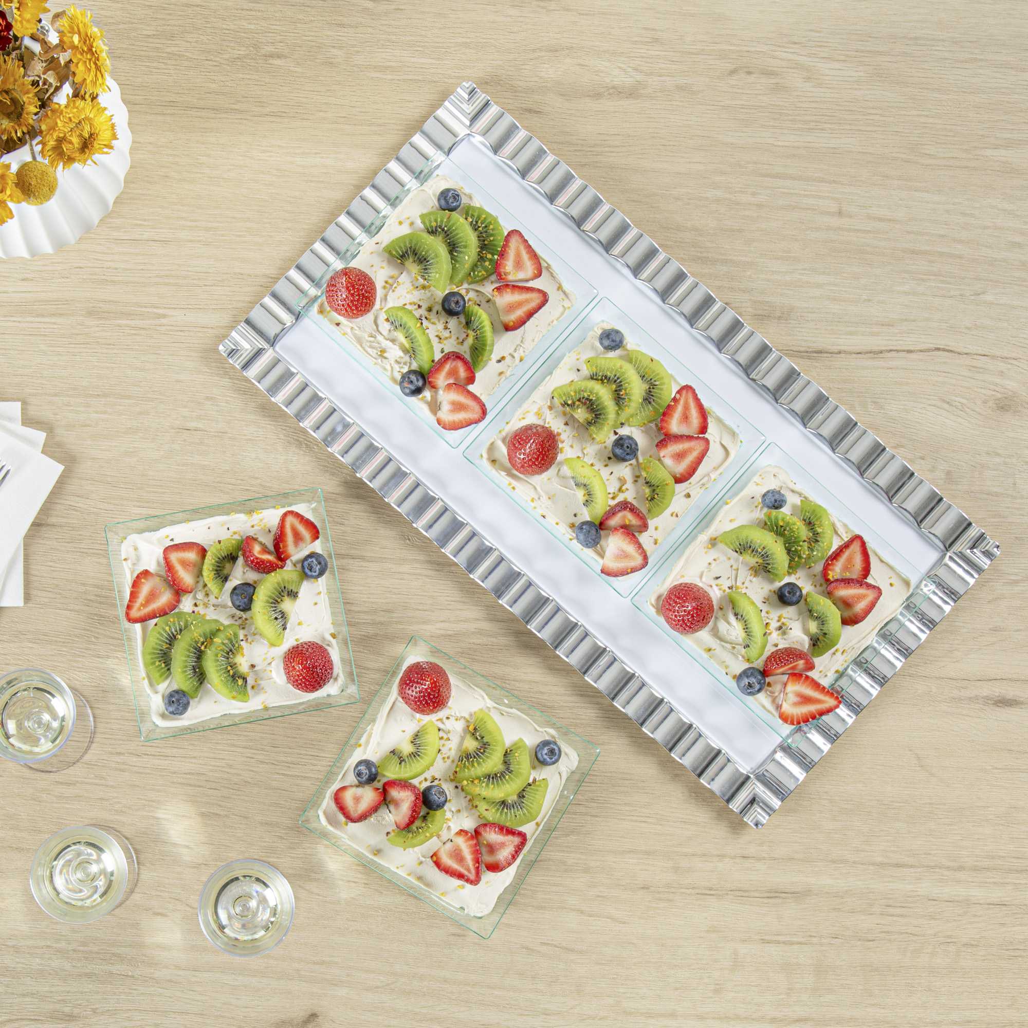- Raised edges carefully contain food, preventing appetizers from falling out