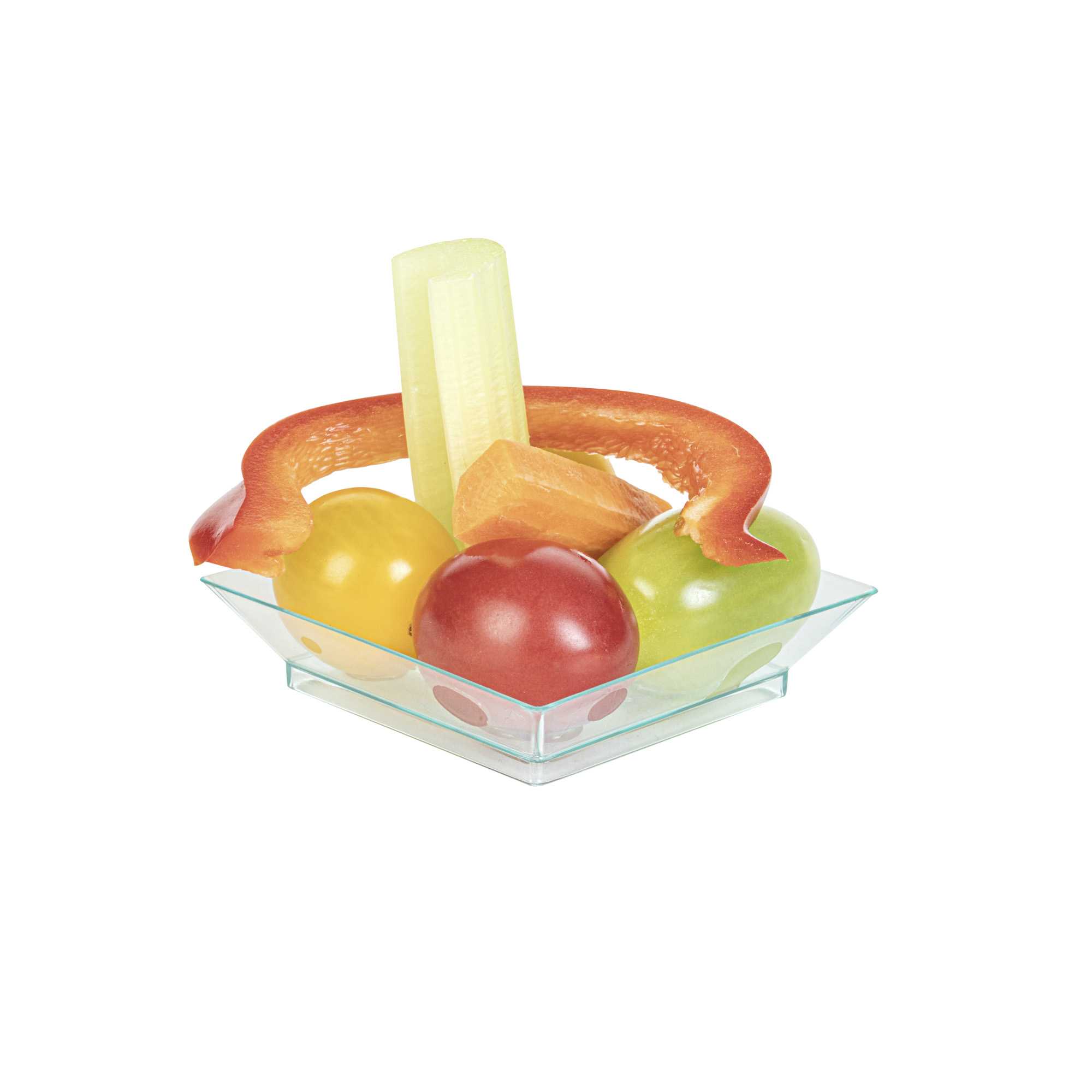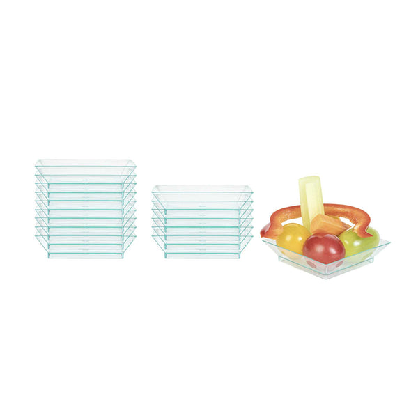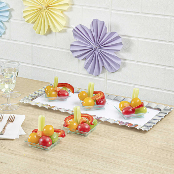 Introduce elegance to your festive dining with our Mini Serve Square Seagreen Plastic Mini Modern Plates. Crafted for durability, these square plastic plates promise unmatched sturdiness without signs of chipping or breaking. These chic disposable plates showcase raised edges, enhancing your plating and presentation while ensuring an organized and spill-free experience. The classy seagreen finish of these medium-sized plastic plates offers the perfect contrast to let your culinary creations shine. Measuring 2.5 inches in length and width, these plates align perfectly with all kinds of catering services. Sold in a 20 count box.