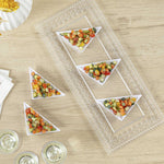 Showcase your culinary gems with our Mini Serve White Plastic Mini Triangolo Appetizer Plates. Composed of premium PS plastic, these mini plates impart durability and protection against warping when presenting foods. The sleek white finish graces these triangolo plates, heightening the visual charm of your delectable appetizers. Designed to accommodate cold fare, these mini plates adeptly present chilled appetizers and icy desserts. The disposable feature of these white plastic plates ensures convenient and quick cleanup after any event. Measuring a 4 inches in length by 2 inches in width, these mini plates display your handcrafted treats with grace and finesse. Sold in a 100 count box.