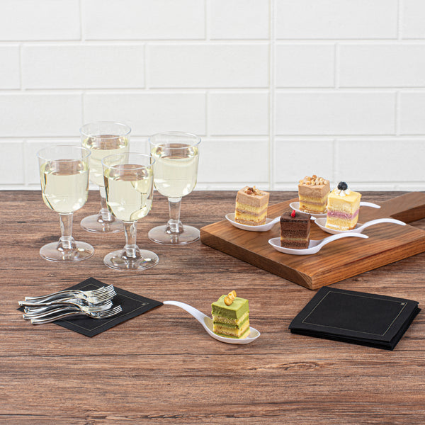 Infuse elegance into your event with our Mini Serve White Plastic Wave Spoons. Featuring a sleek white finish melded with a uniquely curved handle, these appetizer spoons are specifically crafted to impress on any occasion. Each white plastic spoon's elongated basin is designed to comfortably fit bite-sized appetizers and petite desserts, while its flat base ensures an upscale, seamless service. Made from premium plastic, these amuse bouche spoons come with the benefit of being disposable, simplifying post-event cleanup. Each of these disposable white appetizer spoons measures 5 inches in length by 1.5 inches in width. Sold in a 100 count box.