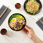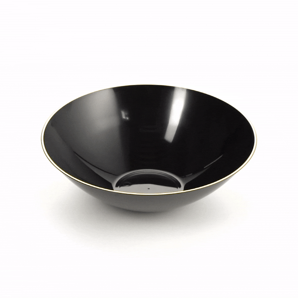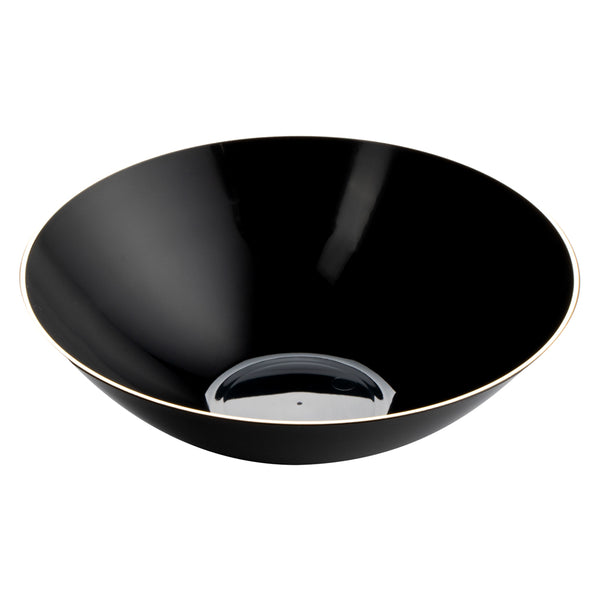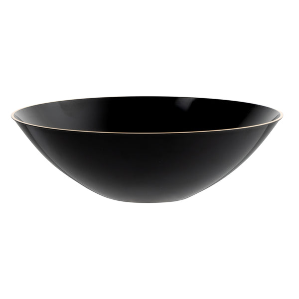 16 OZ ROUND BLACK PLASTIC GOLD-RIMMED BOWL