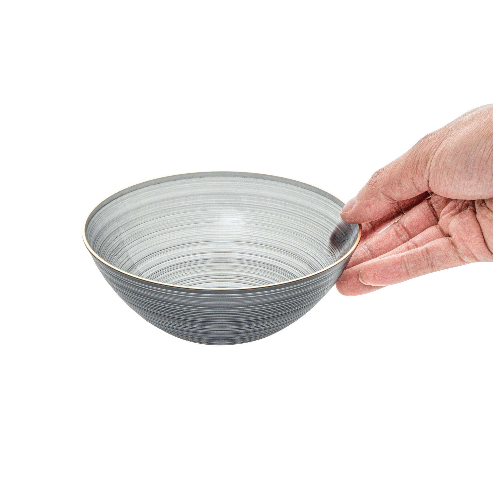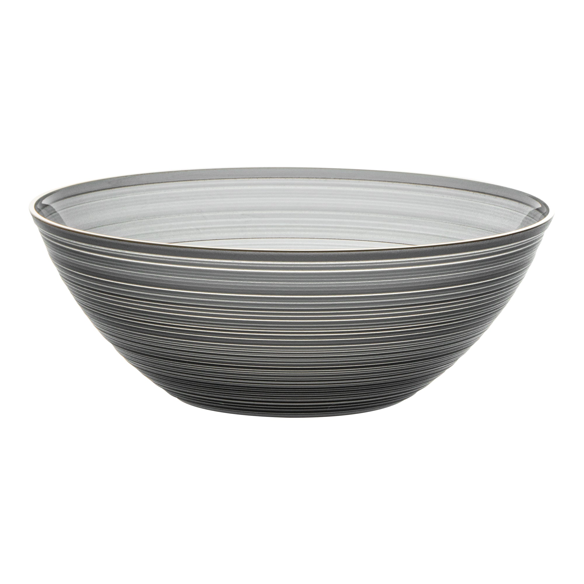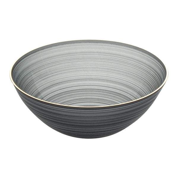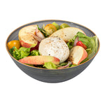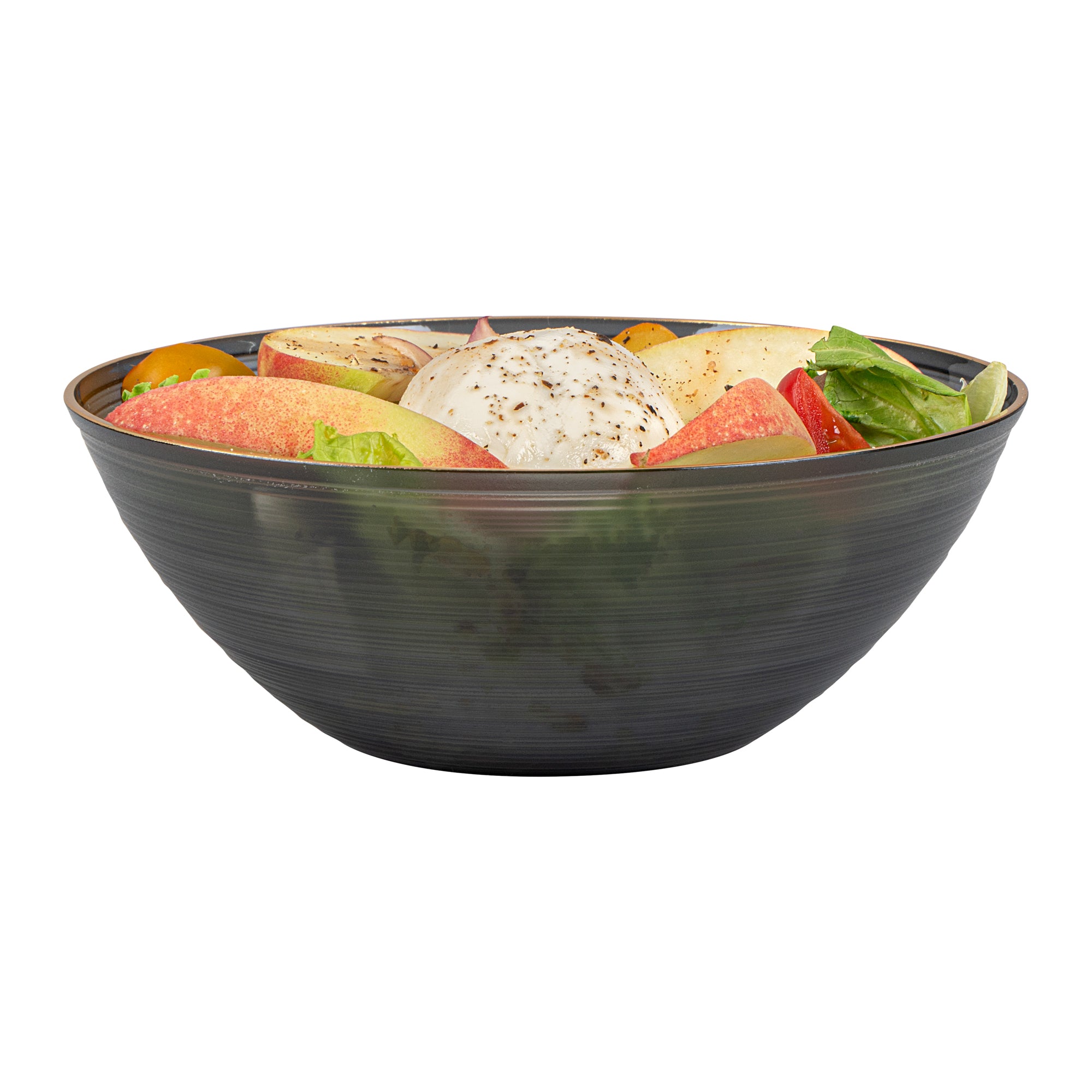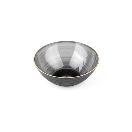 16 OZ ROUND BLACK TRANSLUCENT PLASTIC GOLD-RIMMED BOWL - RIPPLED