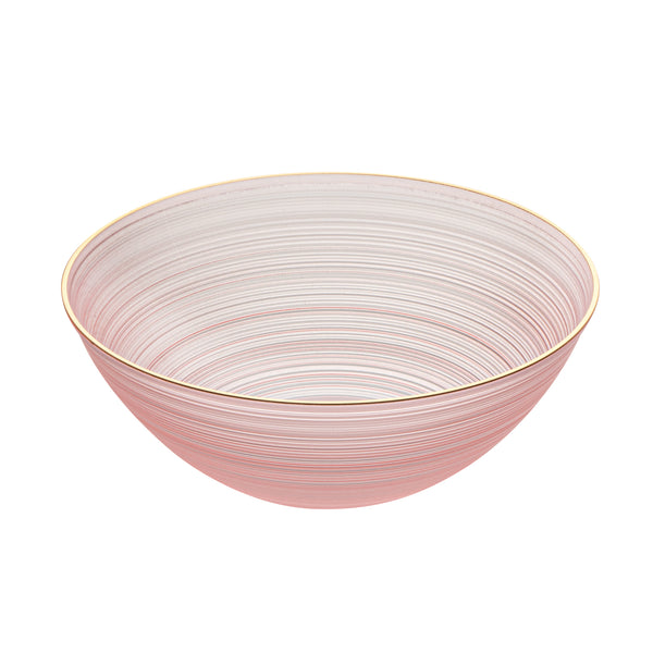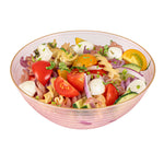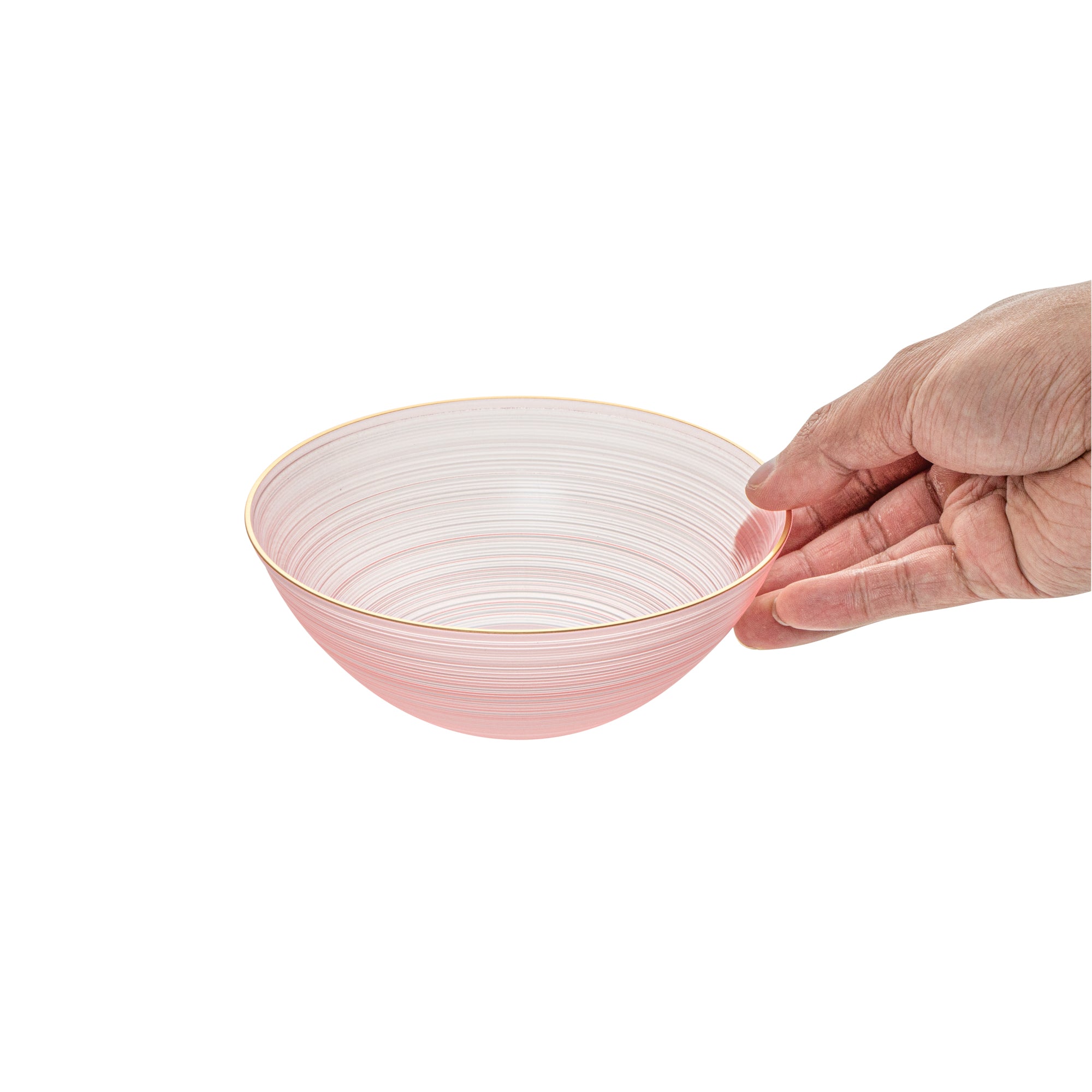 16 OZ ROUND PINK TRANSLUCENT PLASTIC GOLD-RIMMED BOWL - RIPPLED
