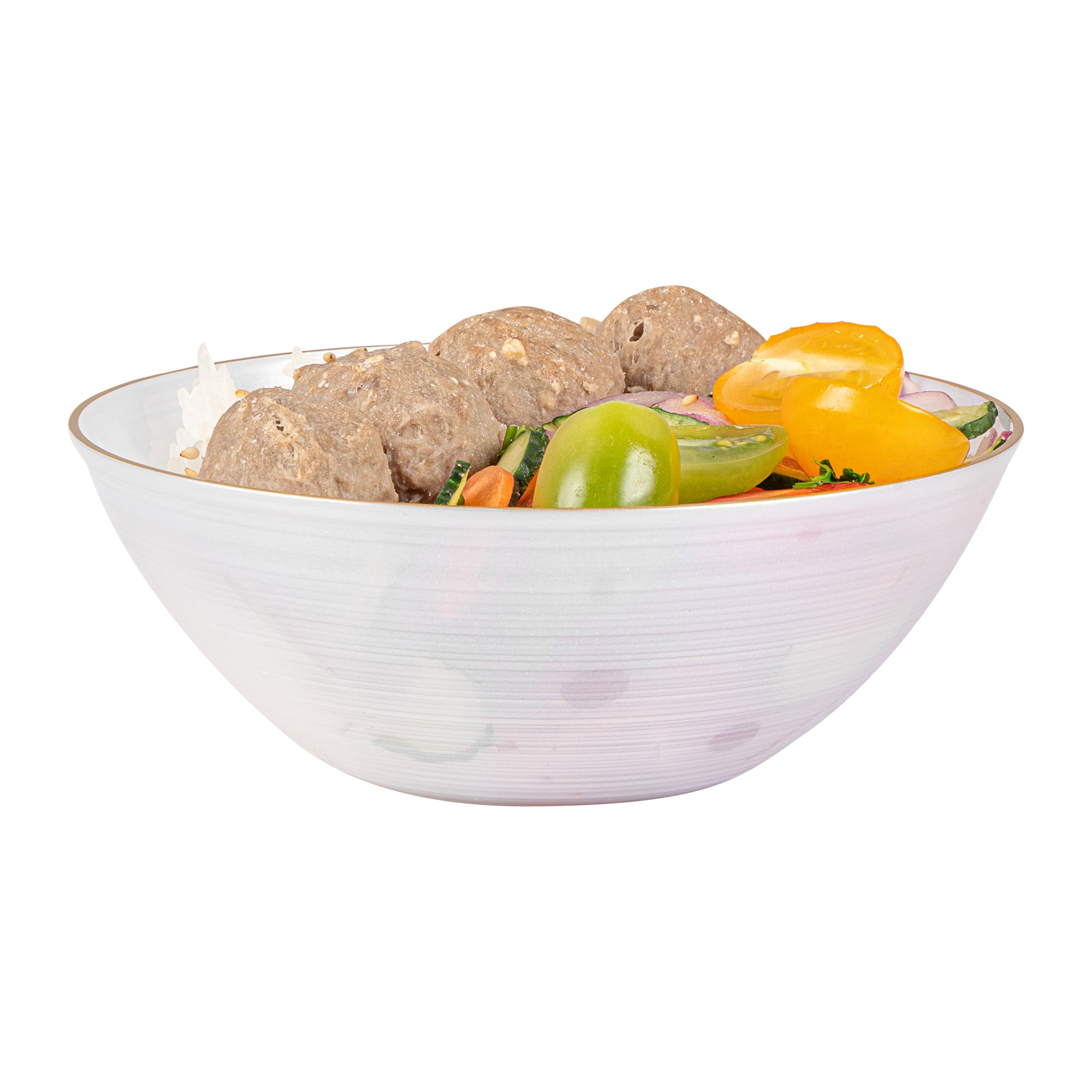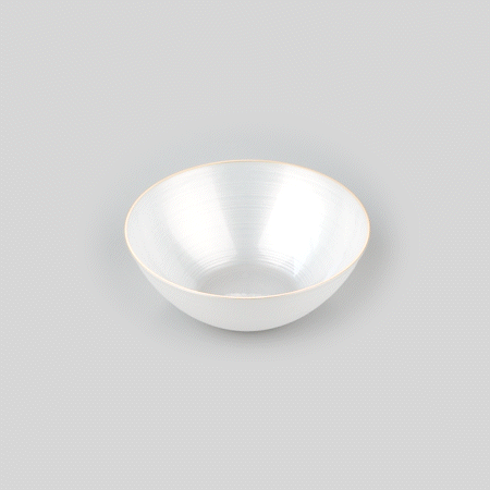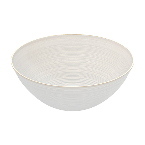 16 OZ ROUND WHITE TRANSLUCENT PLASTIC GOLD-RIMMED BOWL - RIPPLED