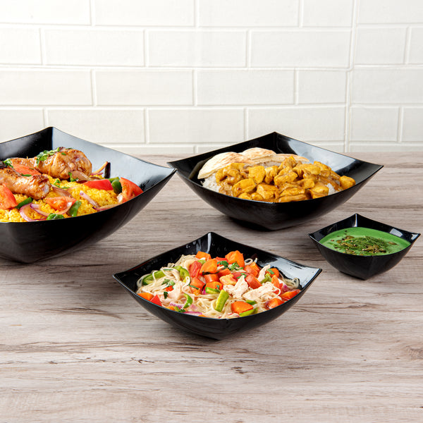These plastic bowls, adorned with variety of designs, effortlessly elevate the presentation of your food. The addition of the intricate accent creates refined touch that can elevate the overall dining experience for any event!