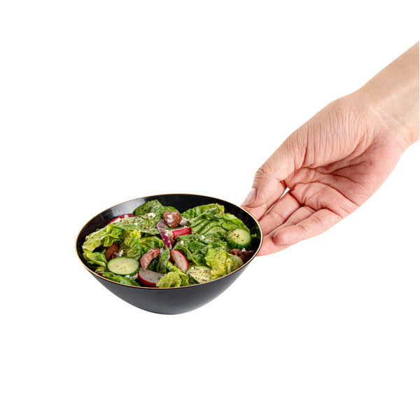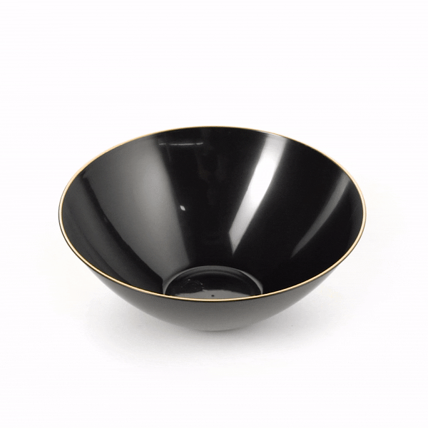 6 OZ ROUND BLACK PLASTIC GOLD-RIMMED BOWL