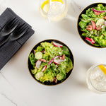 These plastic bowls, adorned with variety of designs, effortlessly elevate the presentation of your food. The addition of the intricate accent creates refined touch that can elevate the overall dining experience for any event!