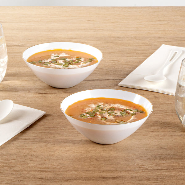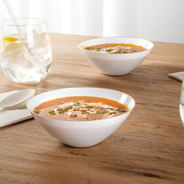 Crafted from high-quality plastic, these gold rimmed bowls are highly durable and resilient, allowing you to easily serve and enjoy food without any breakage or damage. The sturdiness of the material provides a reliable and effortless way to hold a variety of food items, making them a great addition to any dining occasion or event!