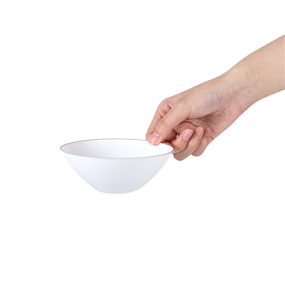 6 OZ ROUND WHITE PLASTIC GOLD-RIMMED BOWL