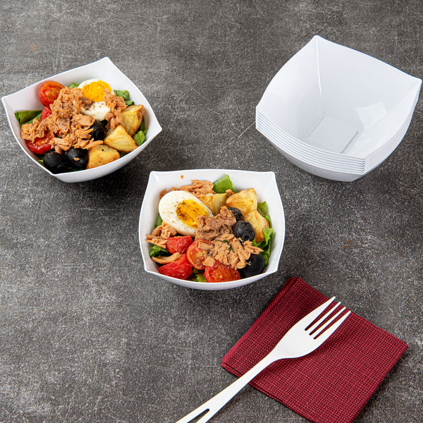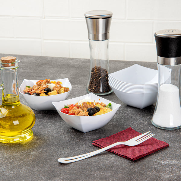 8 OZ SQUARE WHITE PLASTIC BOWL