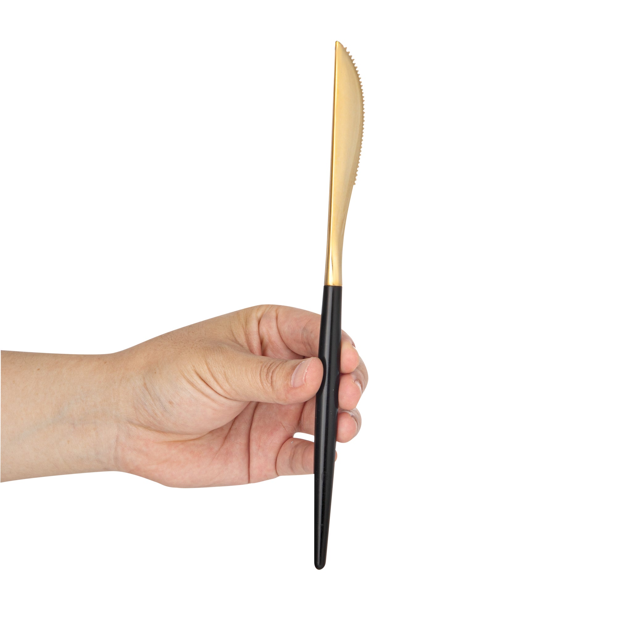 GOLD PLASTIC KNIFE - WITH BLACK HANDLE