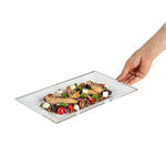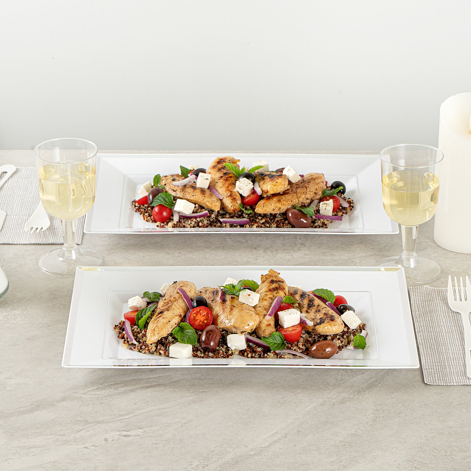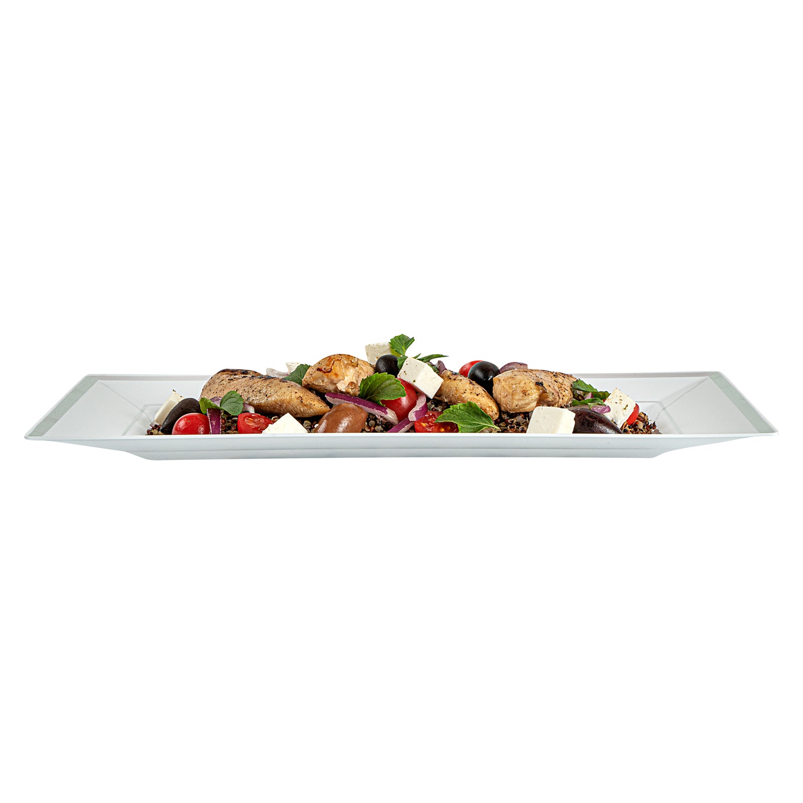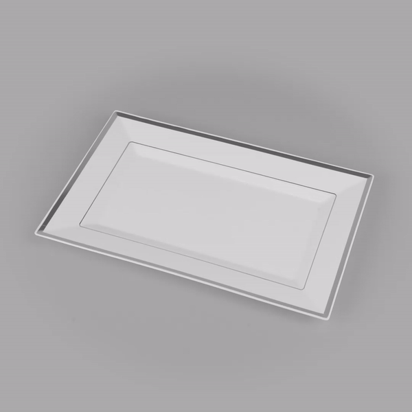 RECTANGLE WHITE PLASTIC SILVER-RIMMED PLATE