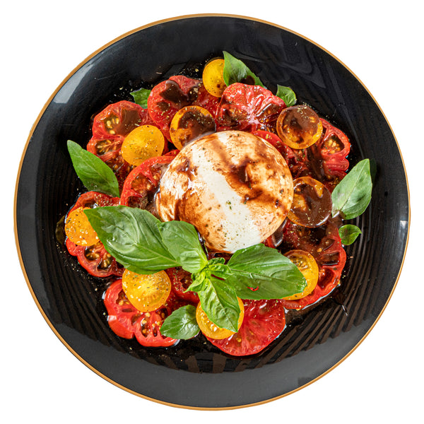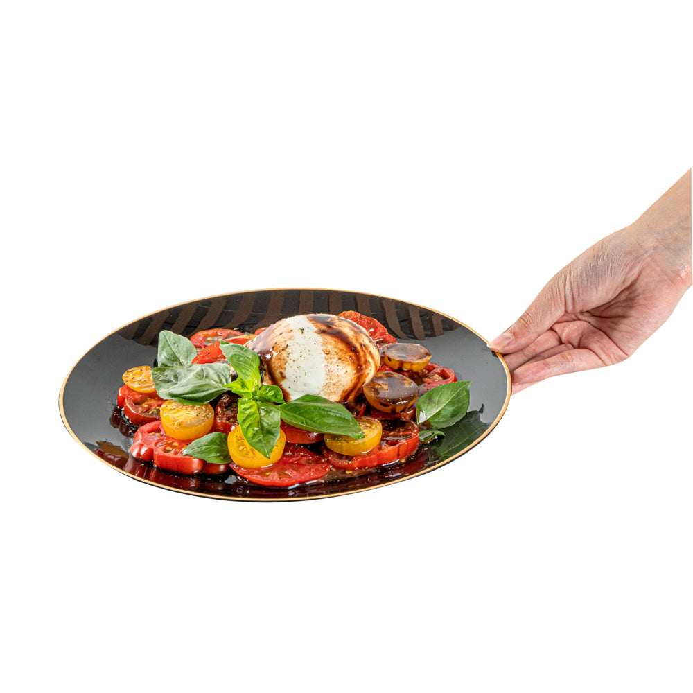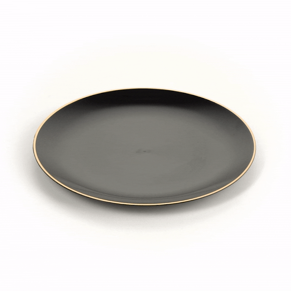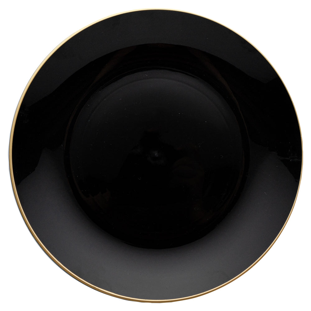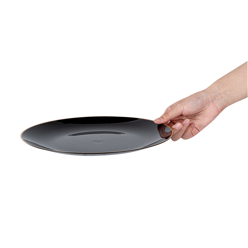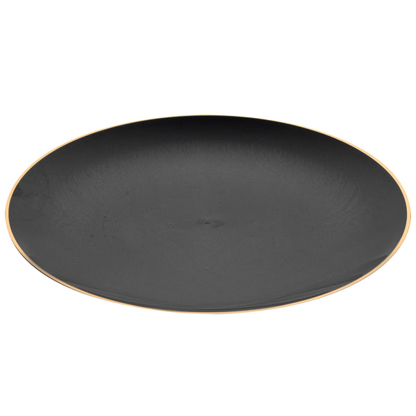 ROUND BLACK PLASTIC GOLD-RIMMED PLATE