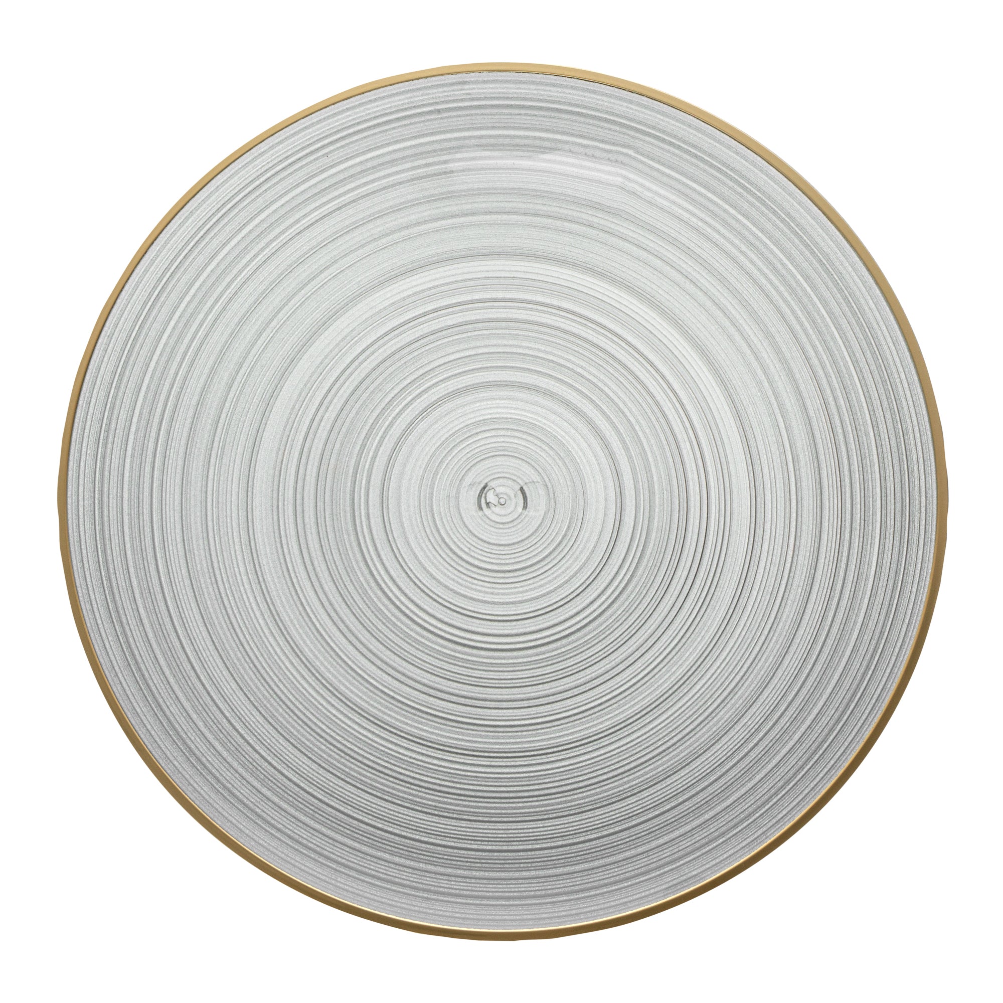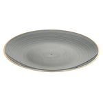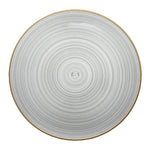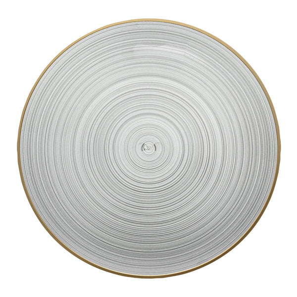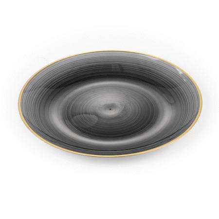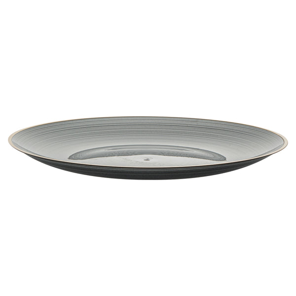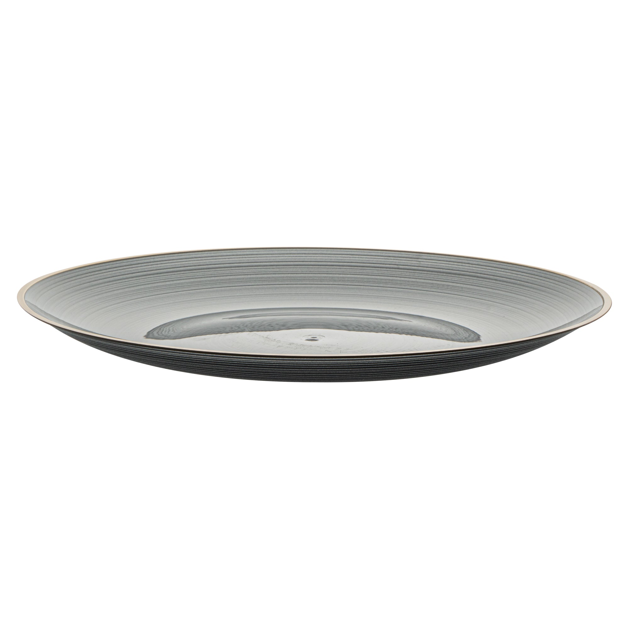 ROUND BLACK TRANSLUCENT PLASTIC GOLD-RIMMED PLATE - RIPPLED