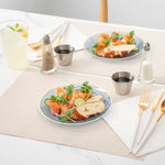Elevate your dining experience with sophisticated tableware. The Moderna Crystal Design Elegant Party Plates feature a rippled design with a gold rim, enhancing table presentation and adding elegance to any dining setting. Crafted from durable plastic, these elegant party plates ensure reliable use during events, reducing the risk of breakage. The translucent blue color provides a unique and stylish appearance, making them ideal plastic wedding plates that complement various decor themes. With a secure-grip design, these plates prevent accidental spills, adding functionality to their stunning aesthetic. Their 7.13-inch diameter is perfect for serving appetizers, desserts, or small entrees, making them versatile for catering events or banquets. Disposable plates enable quick, efficient cleanup, saving time and labor costs, a benefit highly valued in the foodservice industry. Each order includes 20 Moderna Crystal Design Elegant Party Plates.