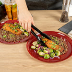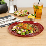 Enhance your dining experience with versatile and elegant dinnerware. The Moderna Versatile Plastic Dinner Plate features a 10.63 inches by 10.63 inches dimension, making it perfect for accommodating a variety of warm and cold dishes with ease. Crafted from recyclable plastic, these plates offer an eco-friendly alternative to traditional plastic dinner plates, supporting sustainability initiatives without sacrificing convenience. The burgundy finish of these plates serves as an elegant backdrop, elevating the presentation of your culinary creations and making them ideal for upscale events, weddings, or catered gatherings. Designed to be cold food and hot food friendly, these plates are both durable and greaseproof, ensuring a reliable and mess-free dining experience. Choose these reusable plastic plates for occasions where elegance and functionality are paramount. Each order includes 200 Moderna Versatile Plastic Dinner Plates.