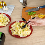 Serve every dish with style and sustainability. Moderna Versatile Plastic Dinner Plates are designed with a recyclable plastic construction that helps reduce waste in foodservice operations, making them an eco-friendly alternative to traditional options. These plates are both cold and hot food friendly, accommodating a wide range of menu offerings with ease, which makes them the perfect choice as a disposable serving plate for any event or restaurant service. The elegant burgundy finish enhances the presentation of plated dishes, creating an attractive backdrop that elevates the dining experience. Measuring 8.6 inches by 8.6 inches, these plates are crafted from durable plastic, ensuring they remain greaseproof and reliable throughout service, while their reusable nature allows for versatile use as a reusable plastic plate. Invest in a solution that combines practicality with sophistication. Each order includes 200 Moderna Versatile Plastic Dinner Plates.