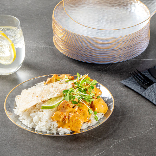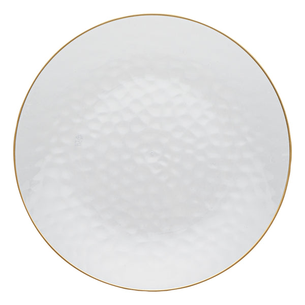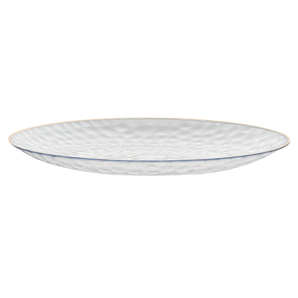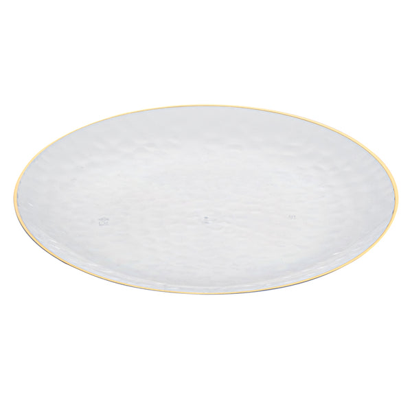 ROUND CLEAR PLASTIC GOLD-RIMMED PLATE - HAMMERED