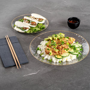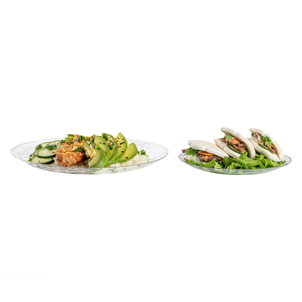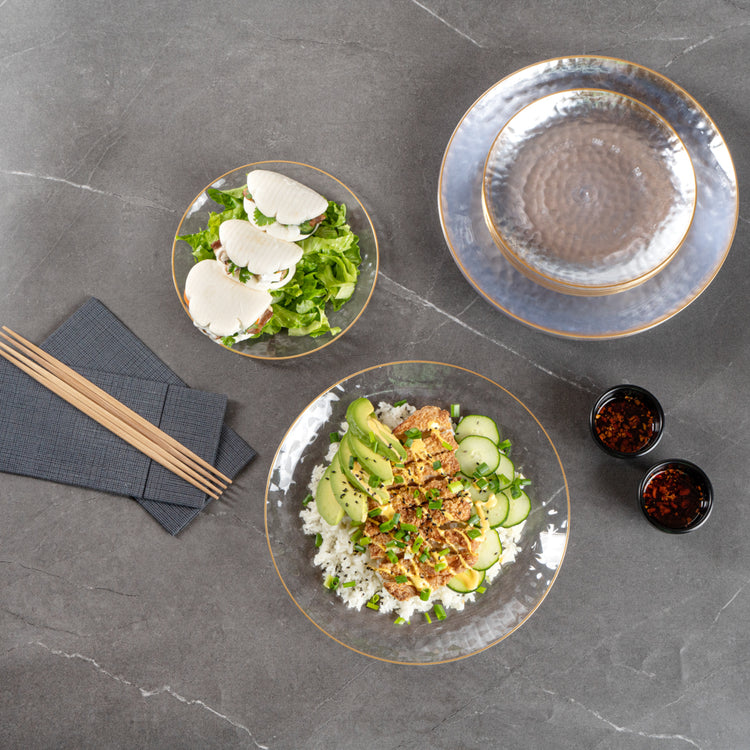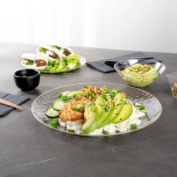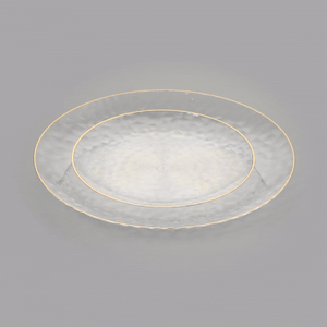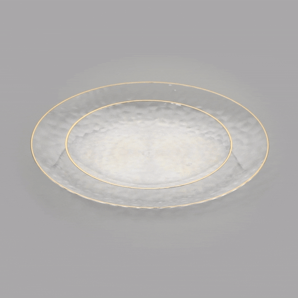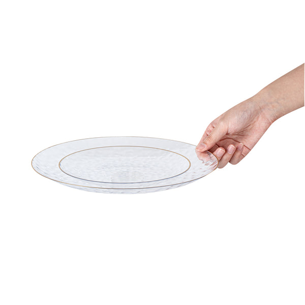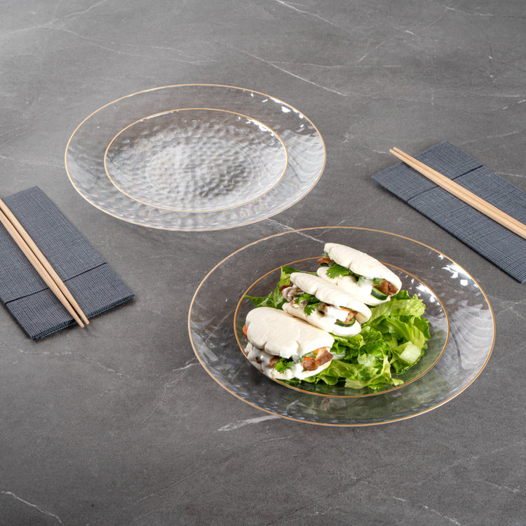 ROUND CLEAR PLASTIC GOLD-RIMMED PLATE SET -HAMMERED, 7" AND 10" PLATES