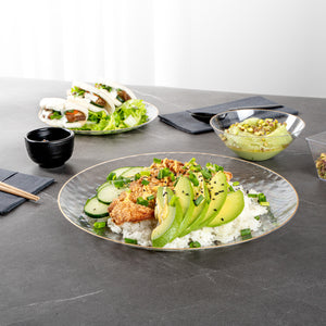 - Gold-rimmed design visually enhances the look of your tablescapes