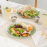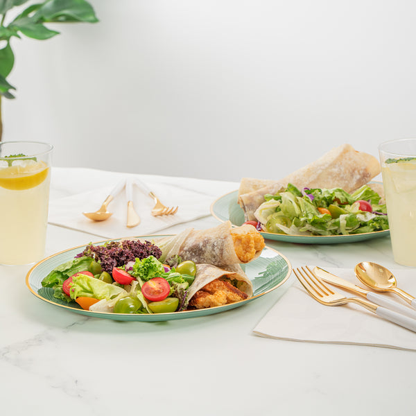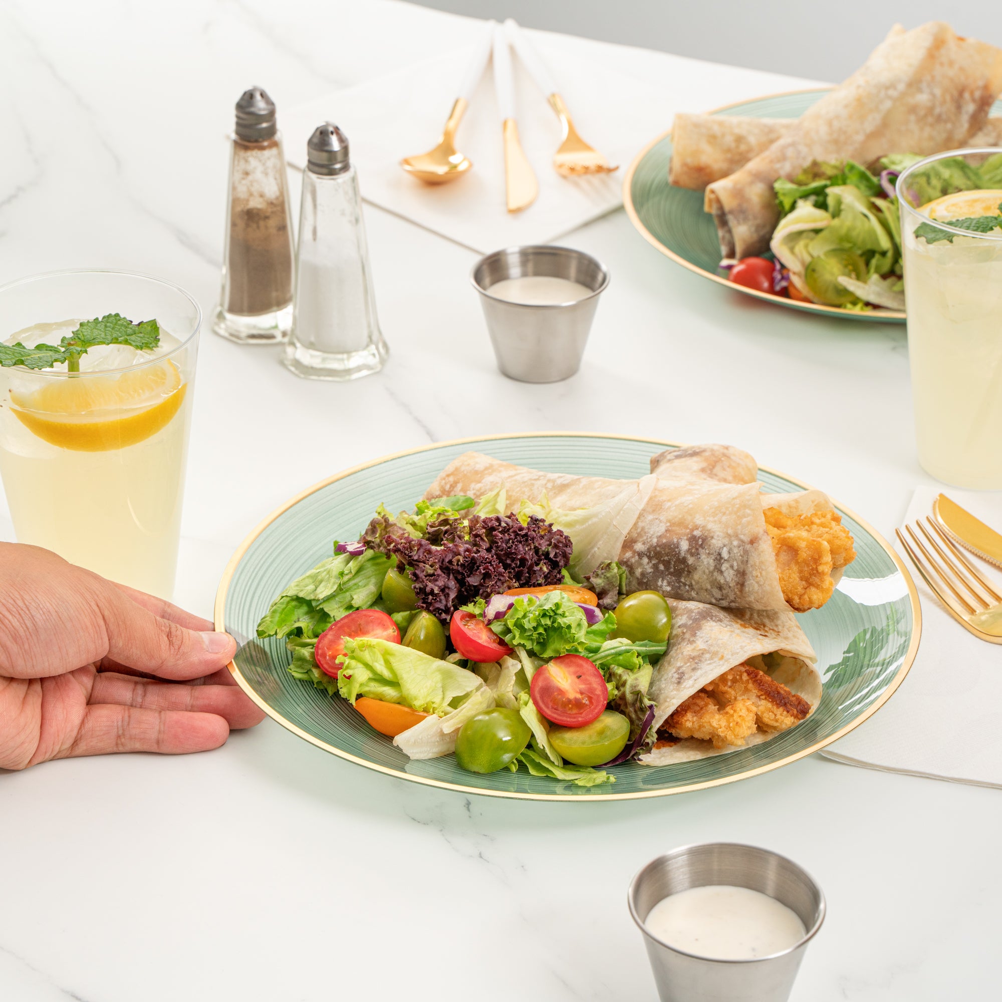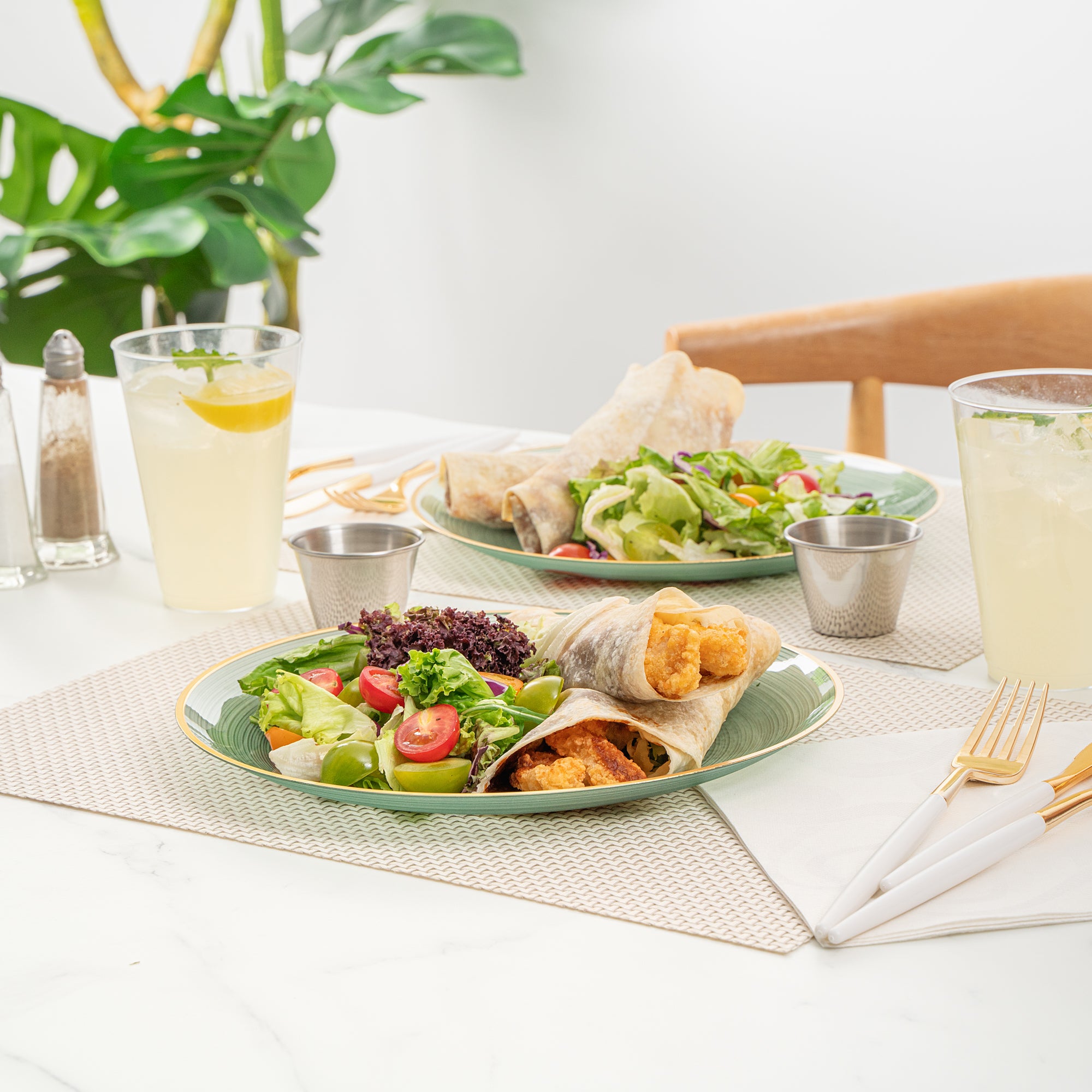 Achieve upscale dining aesthetics without sacrificing convenience. The Moderna Elegant Presentation Plastic Dinner Plates offer a rippled surface that ensures secure handling during service, reducing the risk of spills. These elegant disposable plates feature a crystal design that elevates any table setting, perfect for events requiring sophistication and style. With a translucent green color and a gold rim, these wedding plates disposable options transform table presentations, making them ideal for corporate events and upscale catering services. Constructed from durable plastic, these plates withstand the demands of busy foodservice settings, allowing for confidence in serving. Measuring 10.1 inches by 10.1 inches, these plates facilitate fast cleanup, saving time and effort after events. Make a stylish impression at any gathering with plates that offer both elegance and practicality. Each order includes 20 Moderna Elegant Presentation Plastic Dinner Plates.