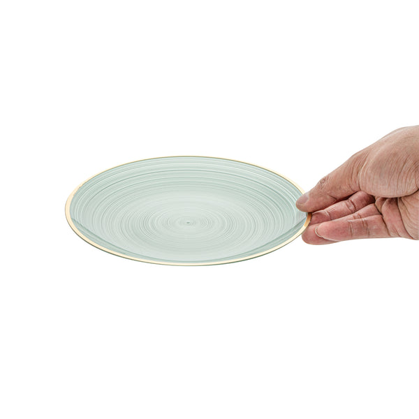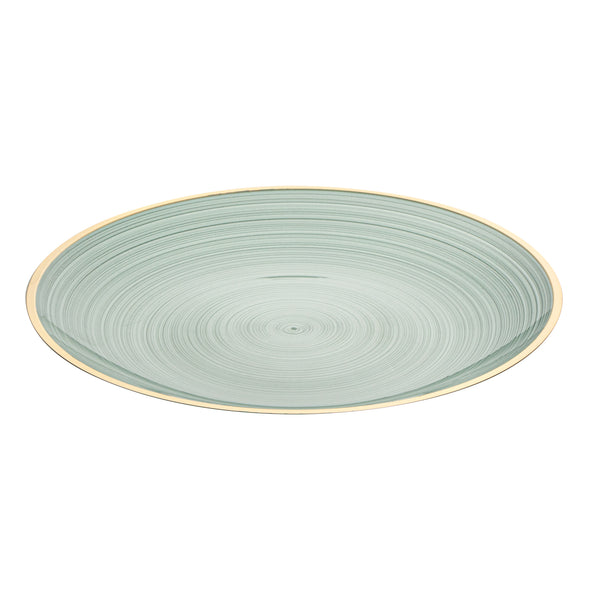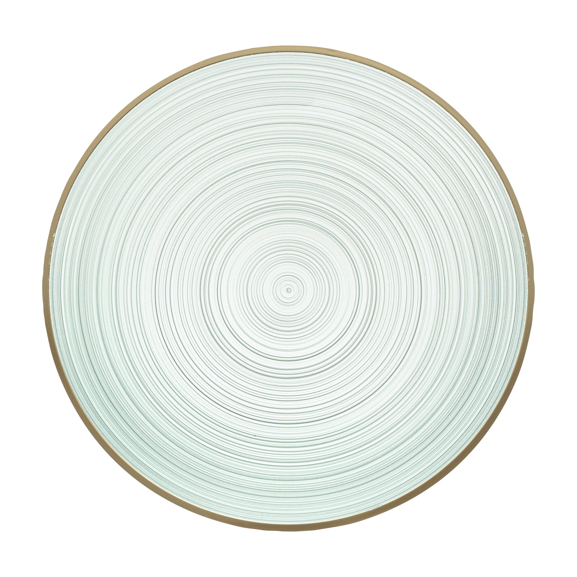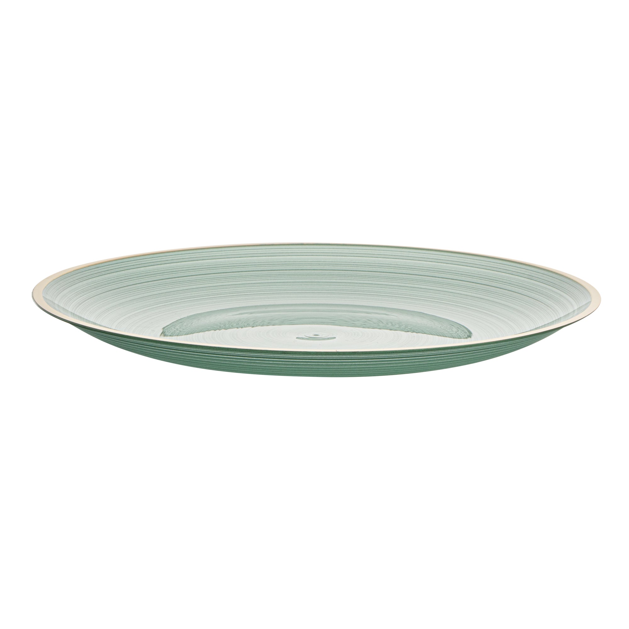 ROUND GREEN TRANSLUCENT PLASTIC GOLD-RIMMED PLATE - RIPPLED