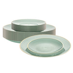 ROUND GREEN TRANSLUCENT PLASTIC GOLD-RIMMED PLATE SET - 7 1/4" AND 10"