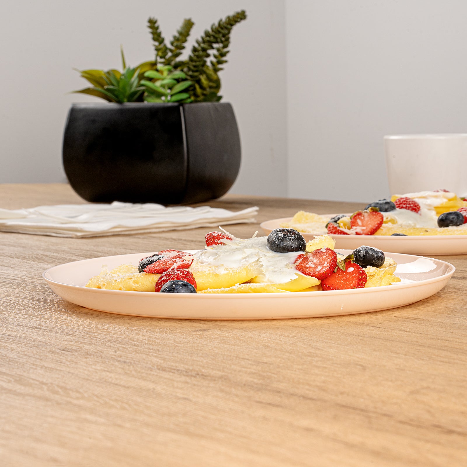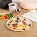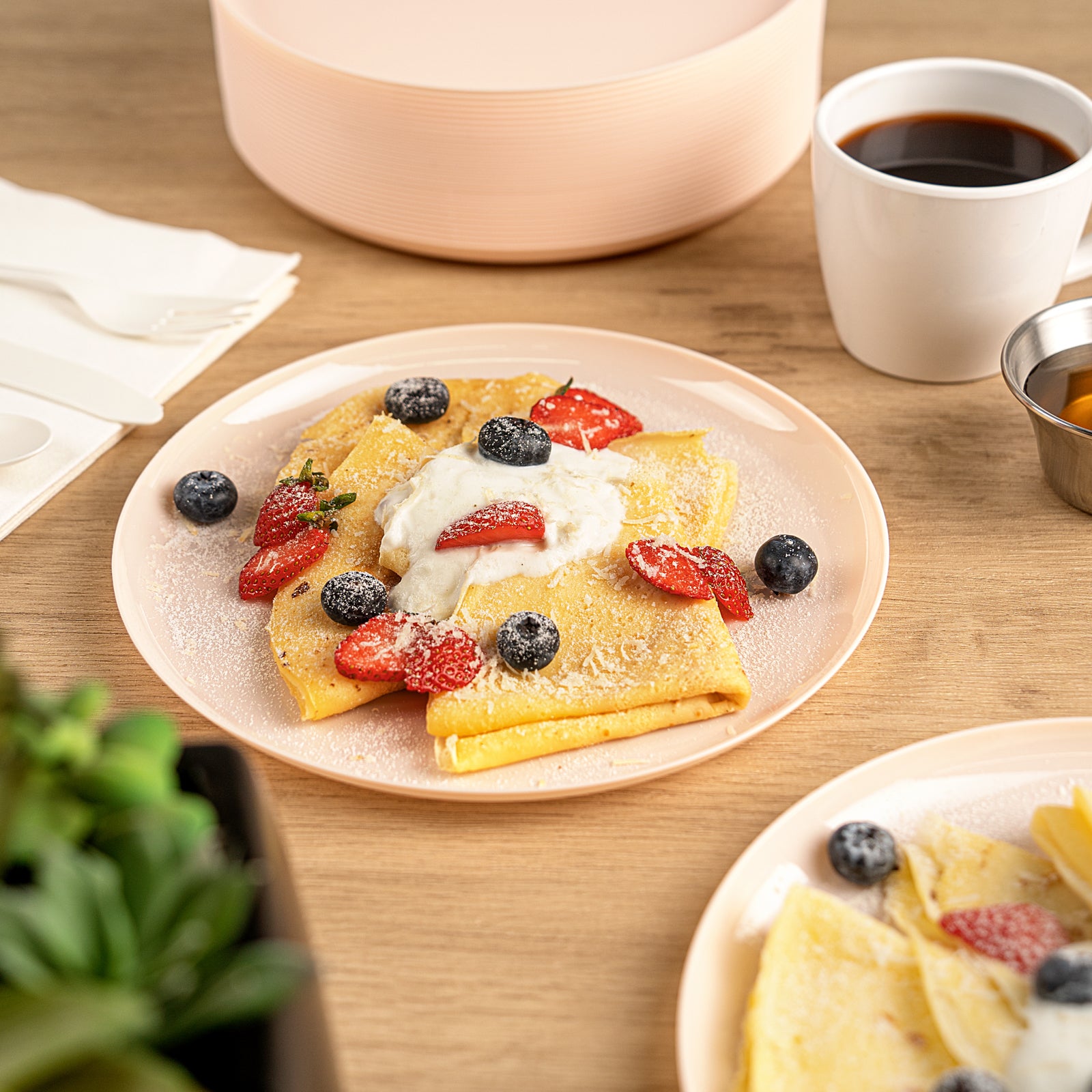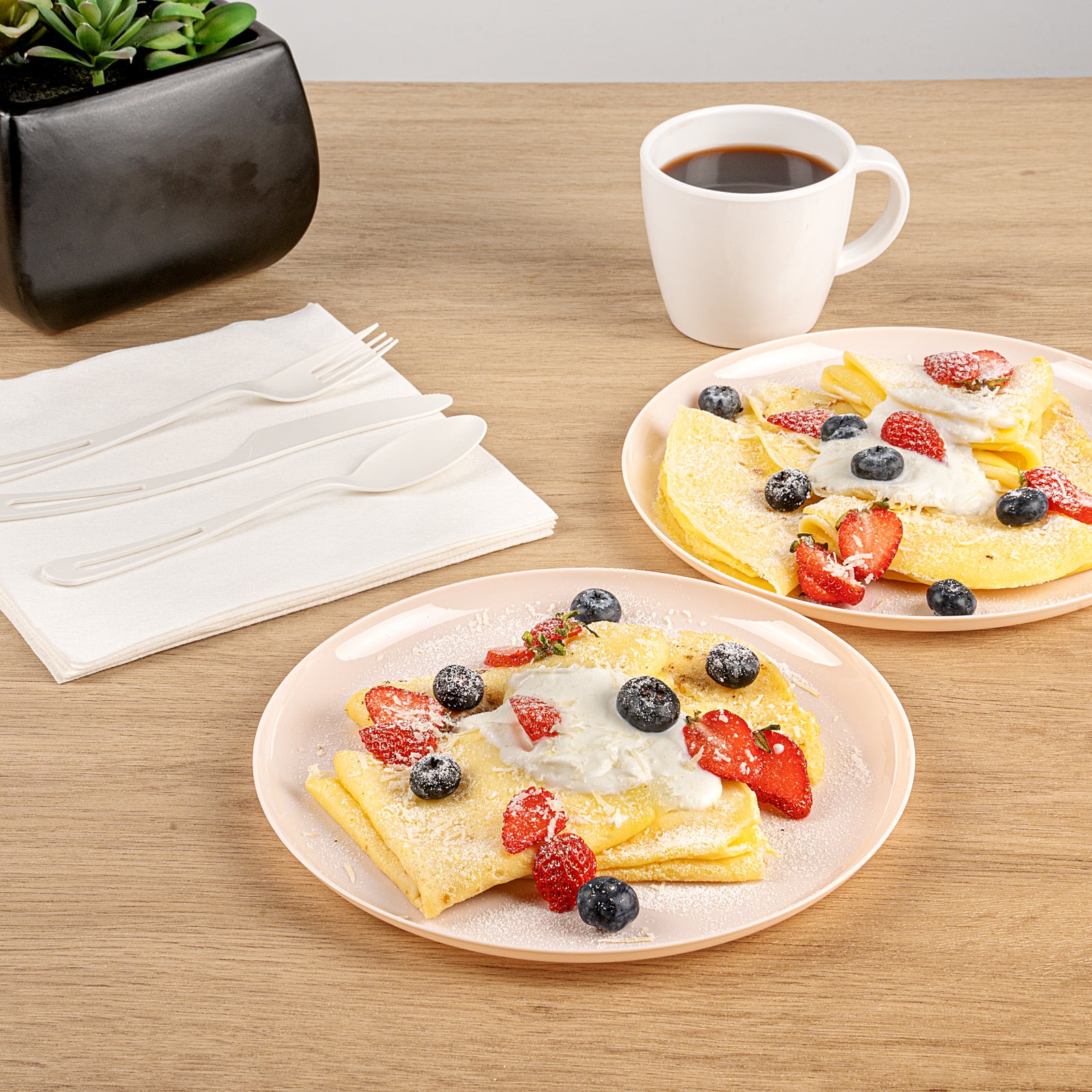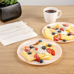 Showcase your culinary creations with elegance and versatility. The Moderna Versatile Plastic Serving Plate allows you to serve both warm and cold dishes, enhancing your food presentation while maintaining efficiency in service. Made from durable plastic, this plate offers a greaseproof surface that withstands hearty meals, making it a reliable plastic serving plate for busy foodservice settings. Its recyclable construction supports eco-friendly operations, providing a sustainable alternative to traditional options without compromising quality. The light pink finish of this durable stone look plate creates a sophisticated backdrop, drawing attention to your beautifully crafted dishes. Measuring 8.6 inches by 8.6 inches, this pink disposable dinnerware is perfect for catering events, banquets, or upscale gatherings where presentation is key. Elevate your serving standards and impress your guests with every meal. Each order includes 200 Moderna Versatile Plastic Serving Plates.
