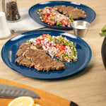 Elevate your dining experience with chic and sustainable plateware. The Moderna Blue Plastic Plate combines a midnight blue finish with recyclable plastic, enhancing the presentation of your culinary creations while supporting sustainability goals in operations. This elegant disposable plate boasts a versatile design that accommodates both hot and cold dishes, making it perfect for upscale events where style and functionality are paramount. Measuring 10.63 inches in length and width, it's an ideal choice for chefs seeking a consistent and professional presentation. The durable, greaseproof construction ensures that your meals remain pristine, offering a reliable solution for any catering or restaurant setting. Choose these reusable plastic plates to impress guests while effortlessly maintaining environmental responsibility. Each order includes 200 Moderna Blue Plastic Plates.