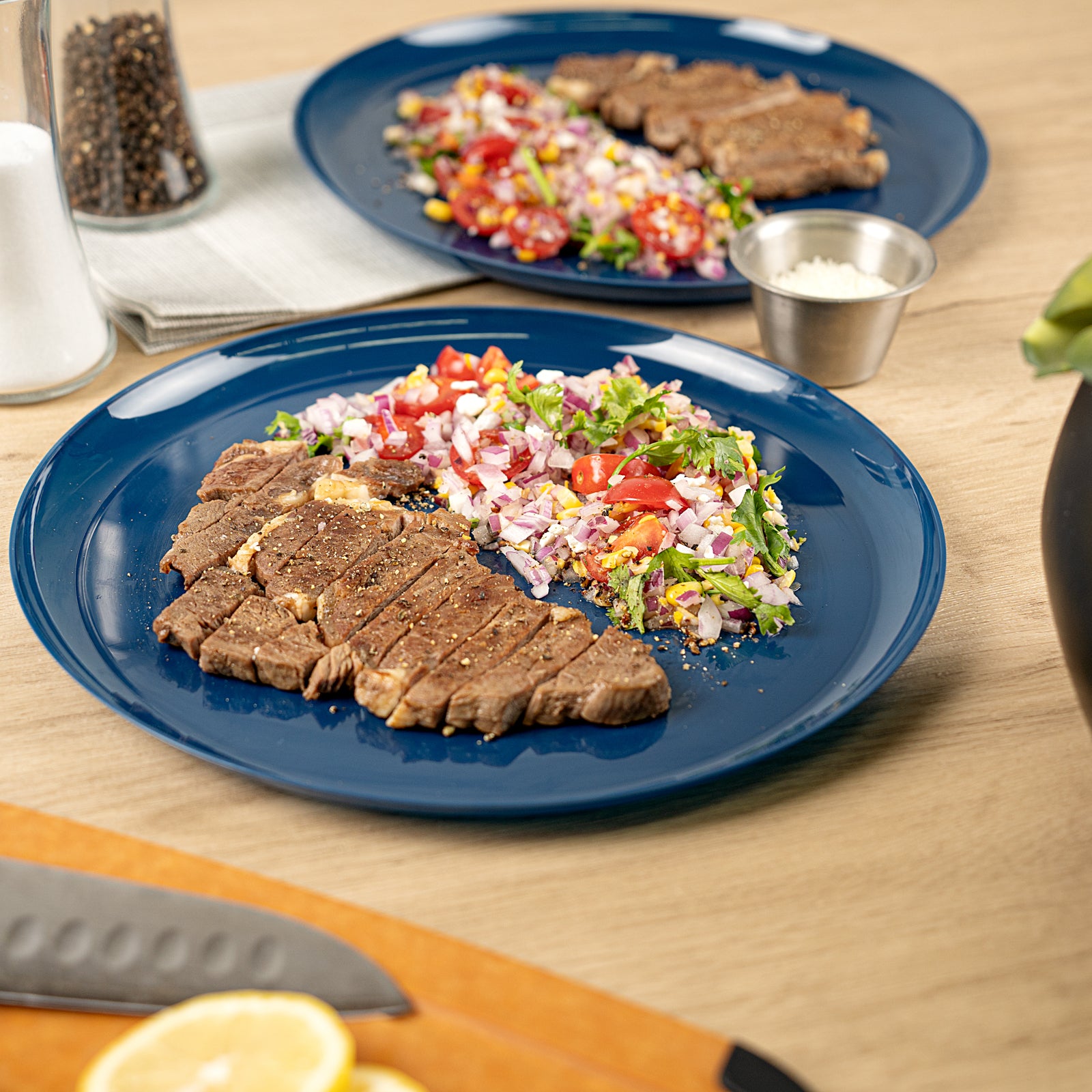 Elevate your dining experience with chic and sustainable plateware. The Moderna Blue Plastic Plate combines a midnight blue finish with recyclable plastic, enhancing the presentation of your culinary creations while supporting sustainability goals in operations. This elegant disposable plate boasts a versatile design that accommodates both hot and cold dishes, making it perfect for upscale events where style and functionality are paramount. Measuring 10.63 inches in length and width, it's an ideal choice for chefs seeking a consistent and professional presentation. The durable, greaseproof construction ensures that your meals remain pristine, offering a reliable solution for any catering or restaurant setting. Choose these reusable plastic plates to impress guests while effortlessly maintaining environmental responsibility. Each order includes 40 Moderna Blue Plastic Plates.