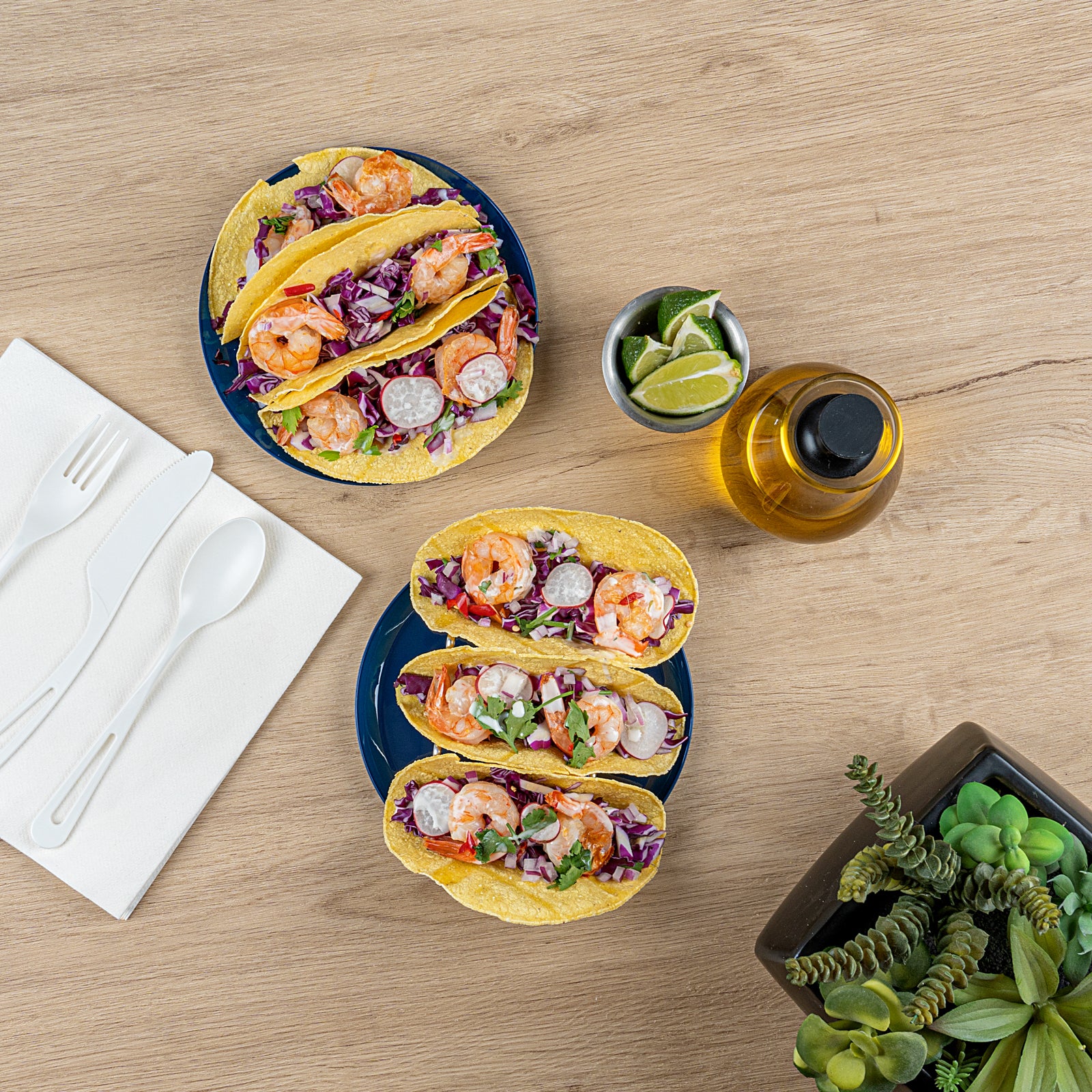 Present your culinary creations on an exquisite stage with our Moderna Blue Plastic Plate. This versatile plastic plate measures 6.3 inches in length and width, making it perfect for serving an array of warm and cold dishes, enhancing its usability across diverse foodservice operations. Constructed from plastic, this party plate not only provides a robust and greaseproof dining solution but also supports your commitment to sustainable practices. The stunning midnight blue finish of this elegant dinner plate elevates the presentation of entrees and side dishes, ensuring a visually appealing dining experience for your patrons. Ideal for upscale events or casual gatherings, this plate is both cold food friendly and hot food friendly, offering reliable performance under various conditions. Elevate your table settings with our practical and stylish plate, designed to impress and perform. Each order includes 200 Moderna Blue Plastic Plates.