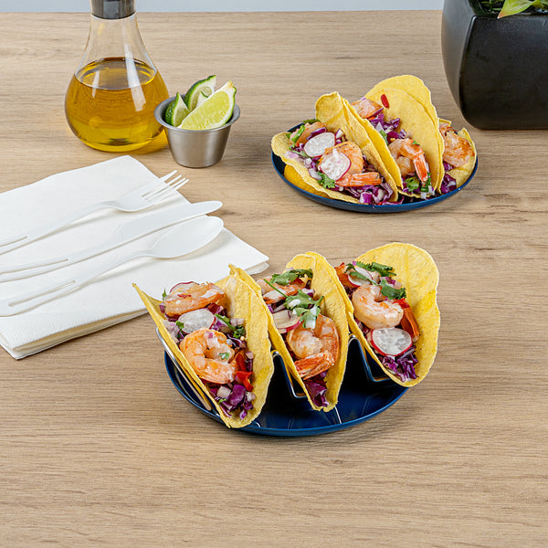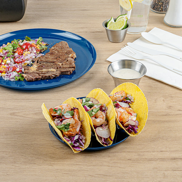Present your culinary creations on an exquisite stage with our Moderna Blue Plastic Plate. This versatile plastic plate measures 6.3 inches in length and width, making it perfect for serving an array of warm and cold dishes, enhancing its usability across diverse foodservice operations. Constructed from plastic, this party plate not only provides a robust and greaseproof dining solution but also supports your commitment to sustainable practices. The stunning midnight blue finish of this elegant dinner plate elevates the presentation of entrees and side dishes, ensuring a visually appealing dining experience for your patrons. Ideal for upscale events or casual gatherings, this plate is both cold food friendly and hot food friendly, offering reliable performance under various conditions. Elevate your table settings with our practical and stylish plate, designed to impress and perform. Each order includes 40 Moderna Blue Plastic Plates.