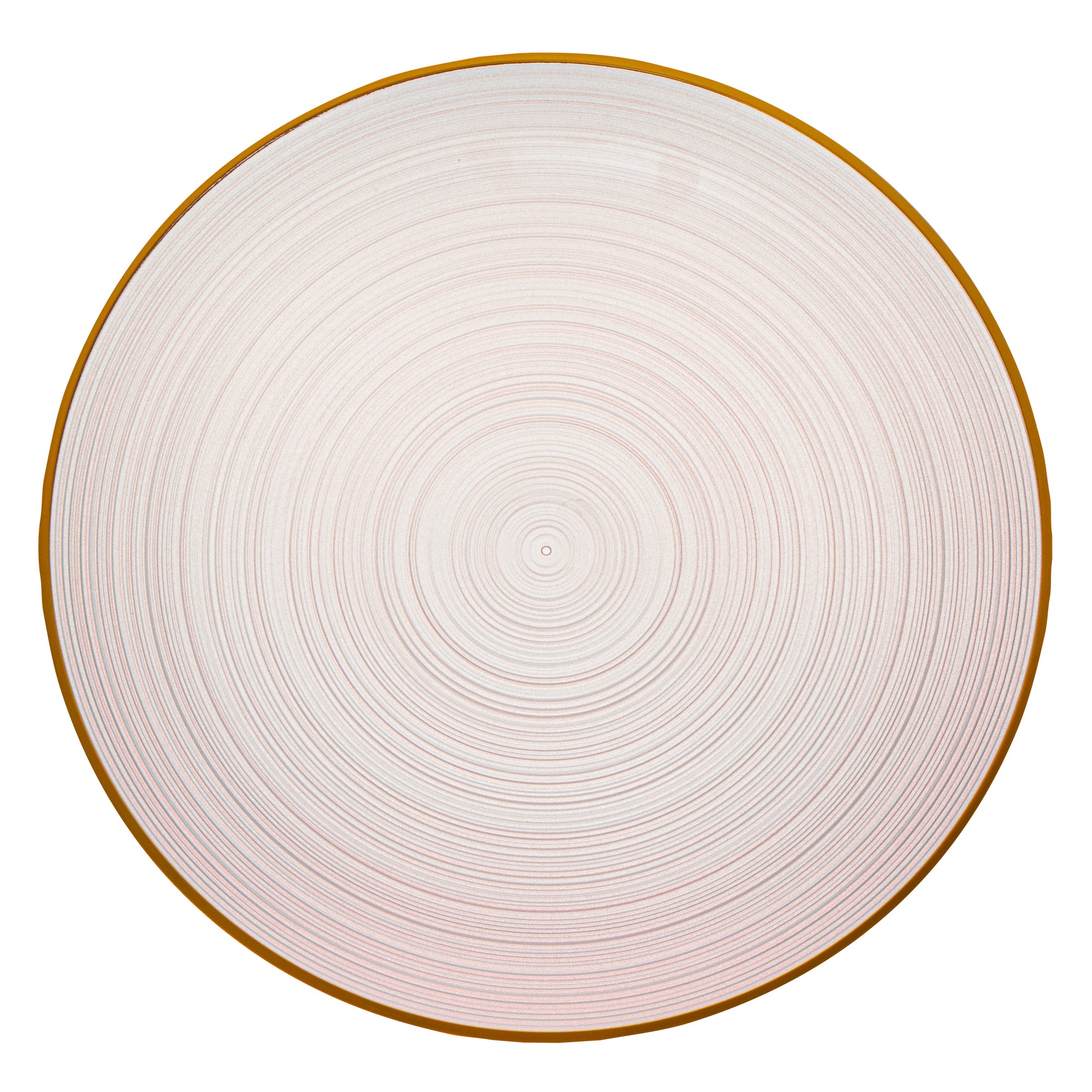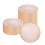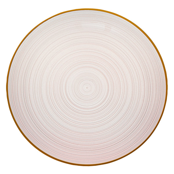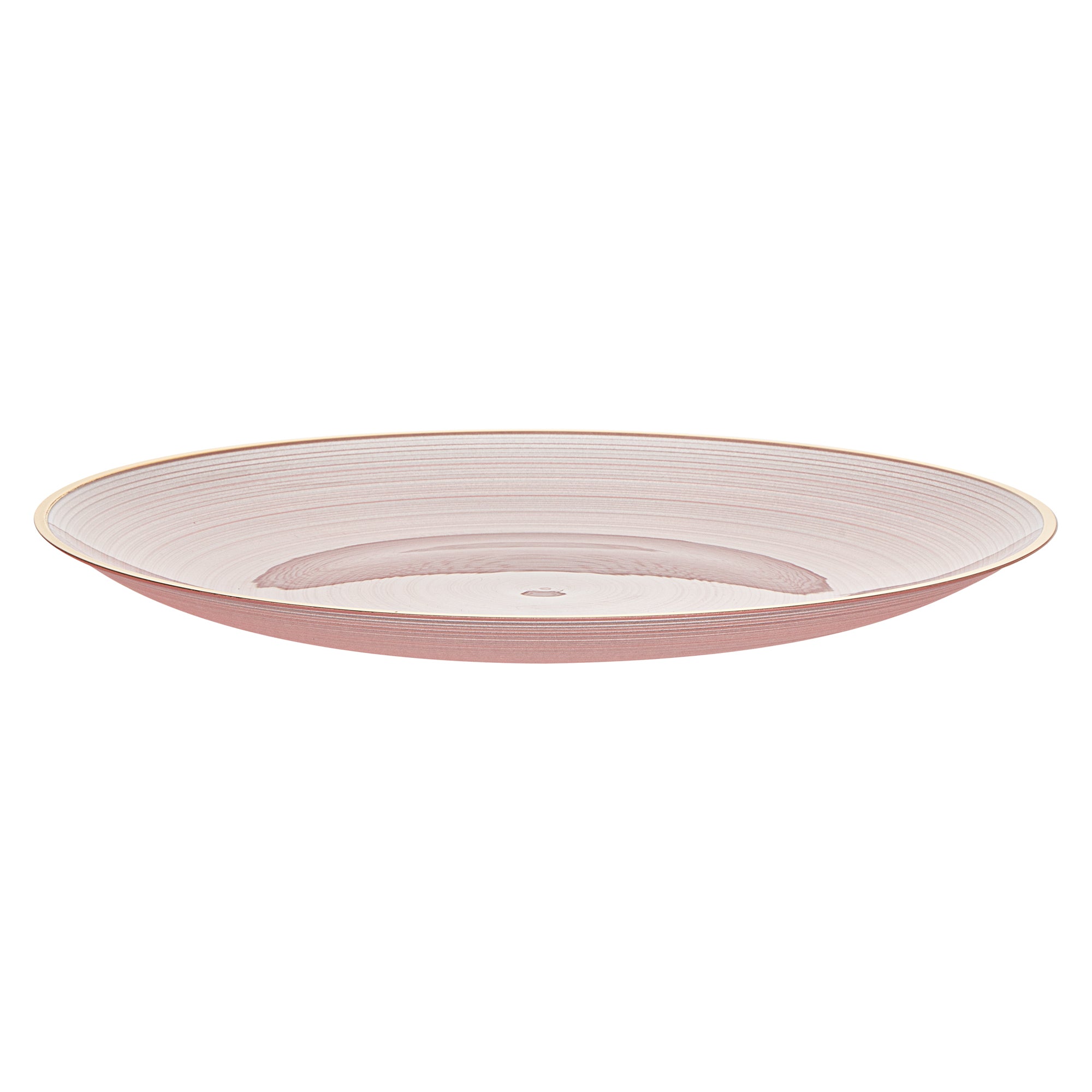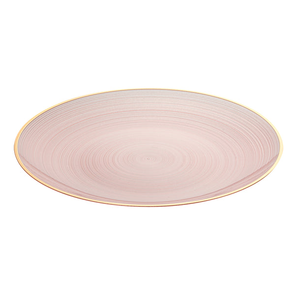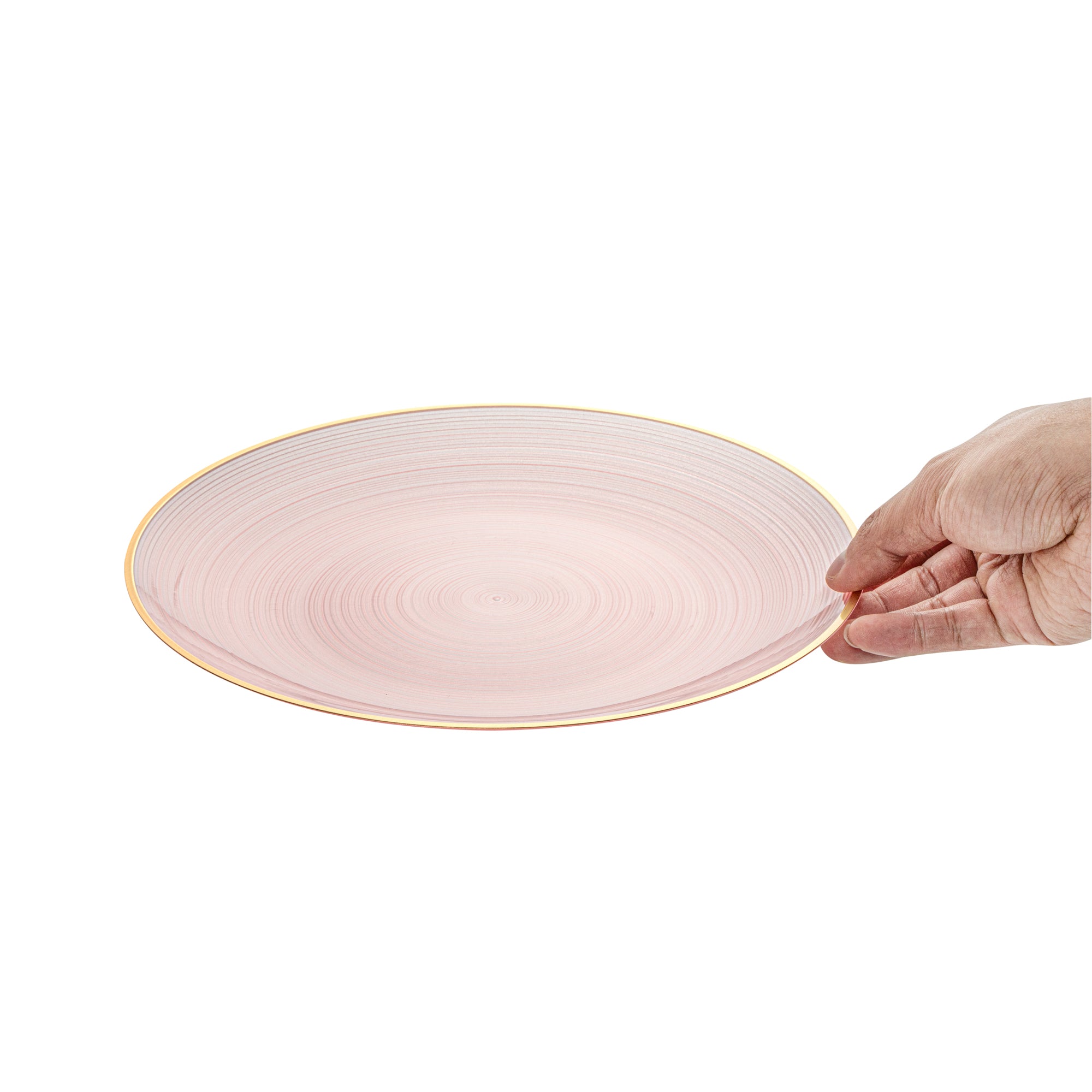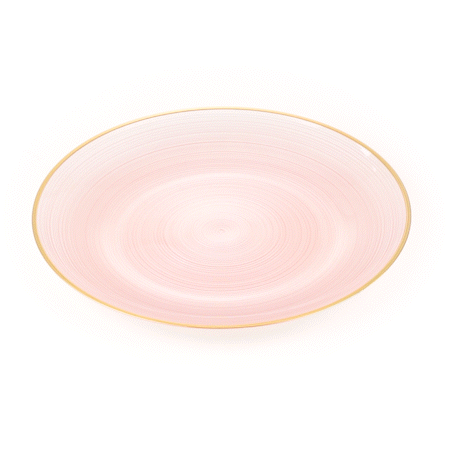 ROUND PINK TRANSLUCENT PLASTIC GOLD-RIMMED PLATE - RIPPLED