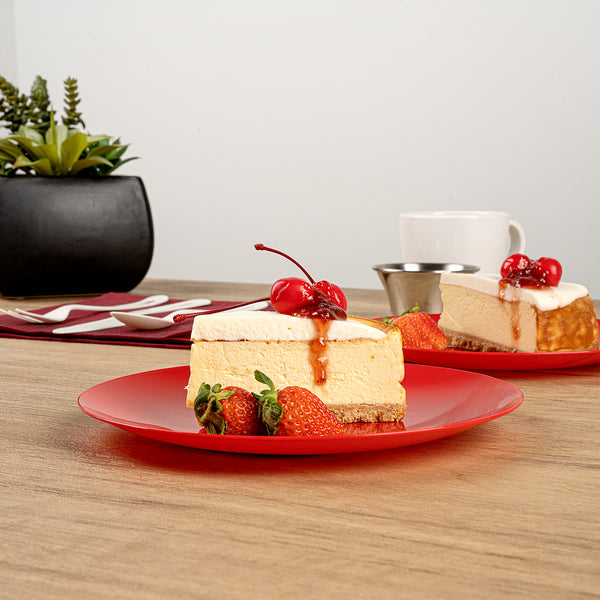 Elevate your event with elegance. Moderna Plastic Party Plates provide a stylish and sustainable solution for serving both warm and cold dishes. Made from recyclable plastic, these plastic party plates support eco-friendly operations, eliminating waste associated with traditional disposables. Their versatile design and 7.5-inch by 7.5-inch dimensions make them perfect for a variety of culinary presentations, from crisp salads to delectable desserts, enhancing the appeal of your disposable dinnerware offerings. The vibrant red finish not only catches the eye but also enhances the presentation of your culinary creations, setting the scene for memorable dining experiences. Cold food friendly, these sturdy plastic plates are ideal for both casual and formal events, ensuring durability and reliability without compromising on style. Make a sustainable choice that doesn't sacrifice aesthetics. Each order includes 40 Moderna Plastic Party Plates.