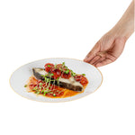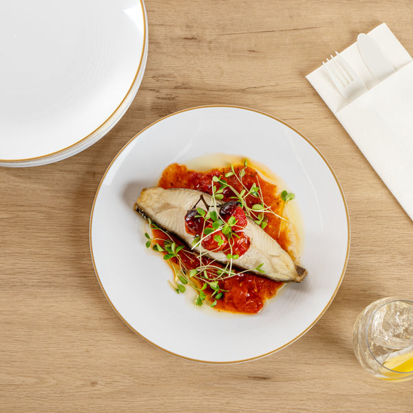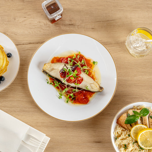 - Gold-rimmed design visually enhances the look of your tablescapes
