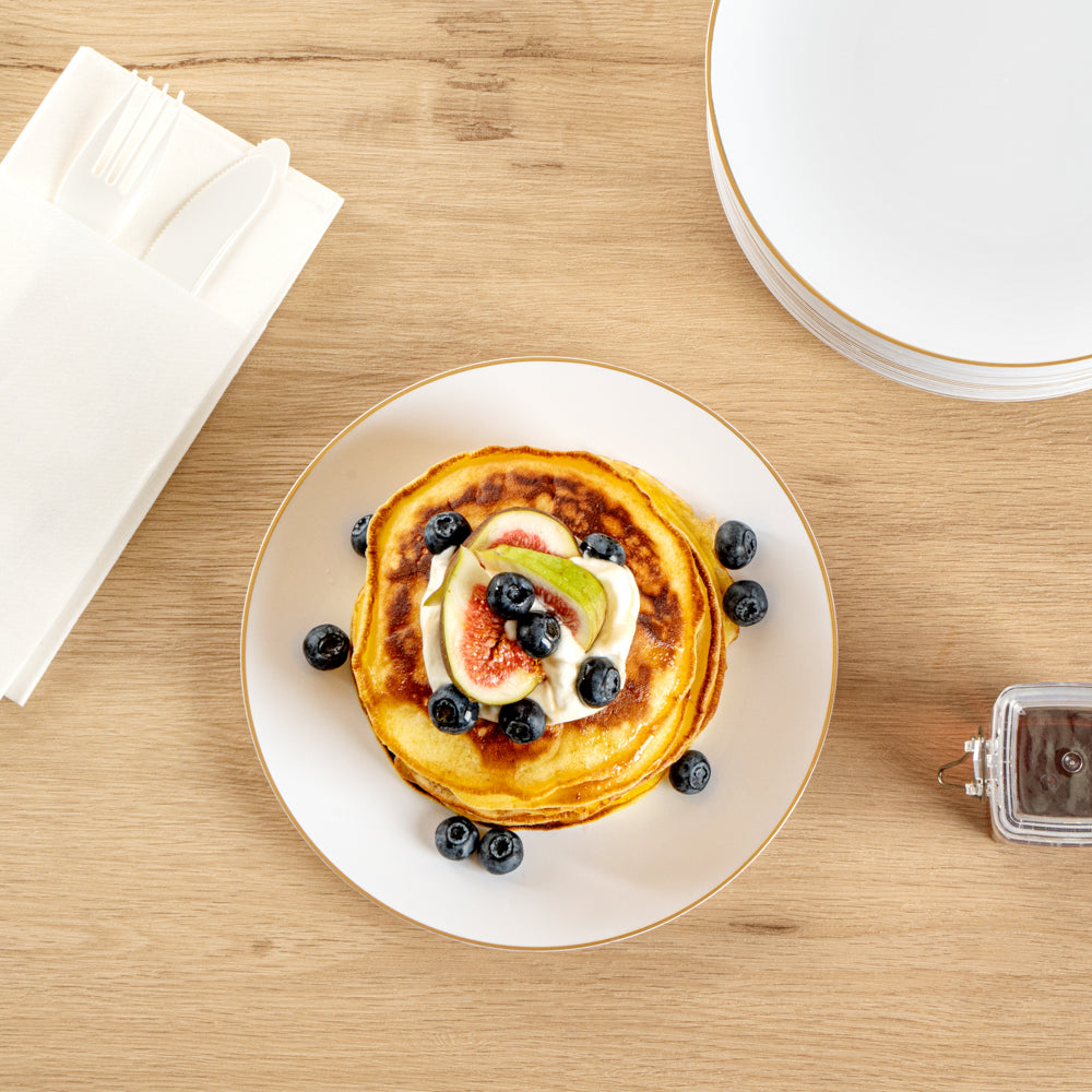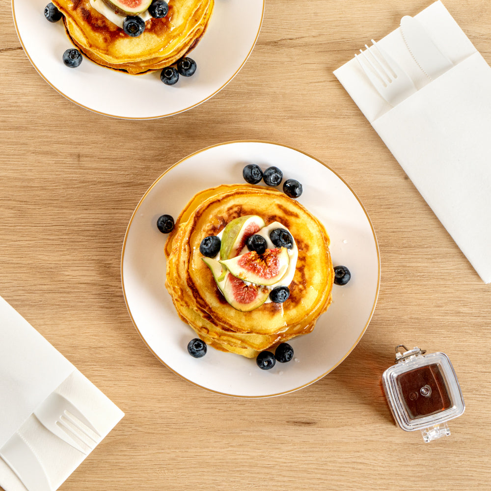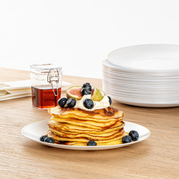 - Gold-rimmed design visually enhances the look of your tablescapes