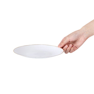 ROUND WHITE PLASTIC GOLD-RIMMED PLATE