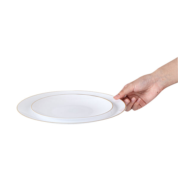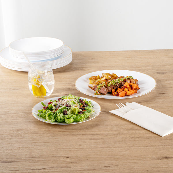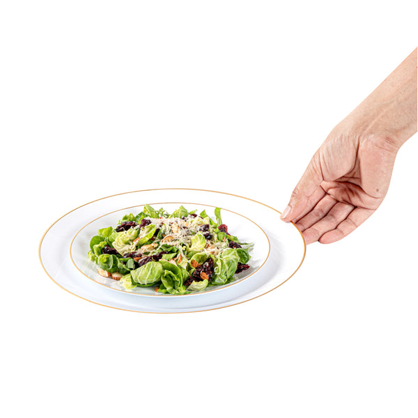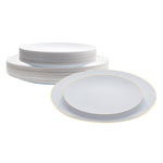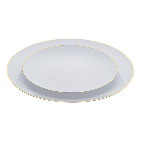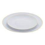 ROUND WHITE PLASTIC GOLD-RIMMED PLATE SET - INCLUDES 7" AND 10" PLATES