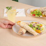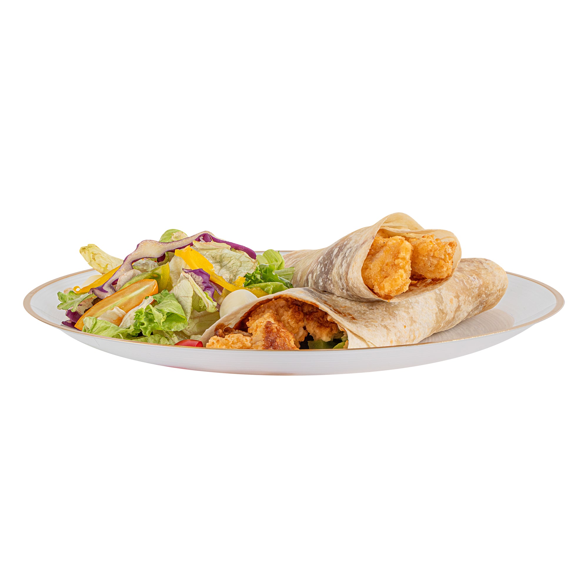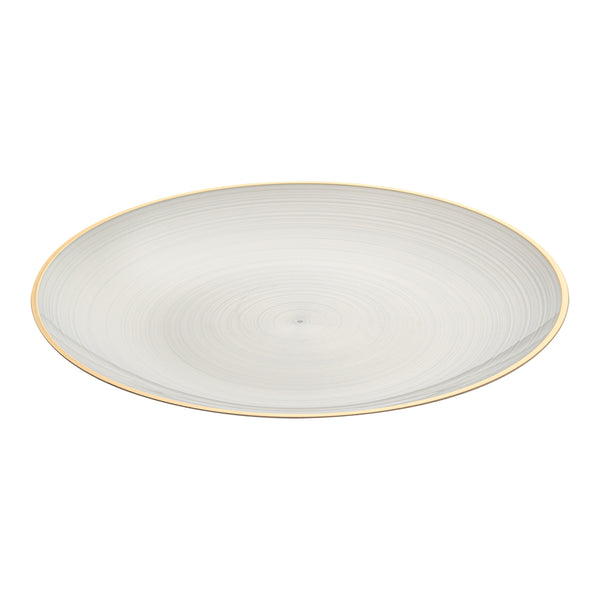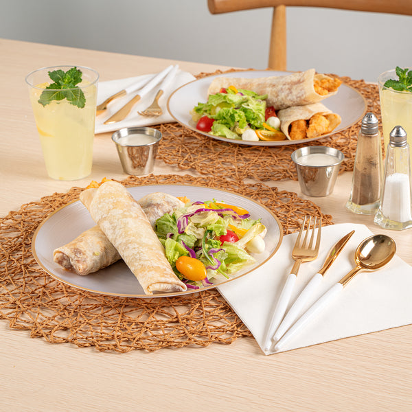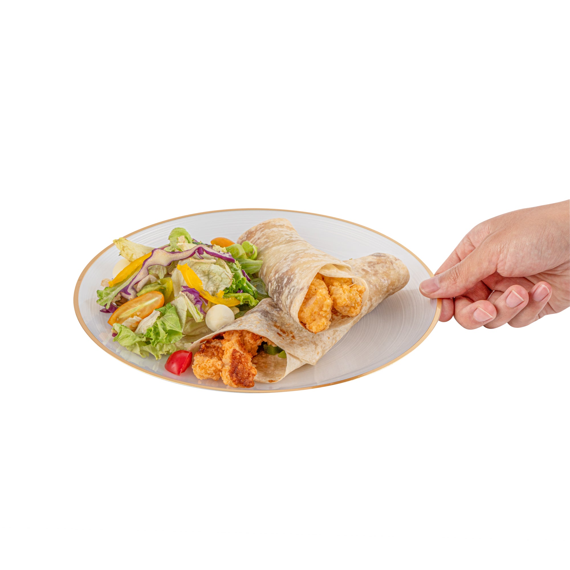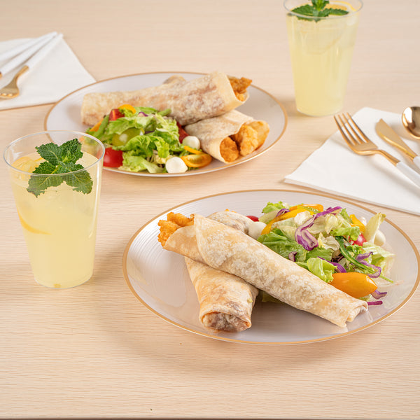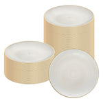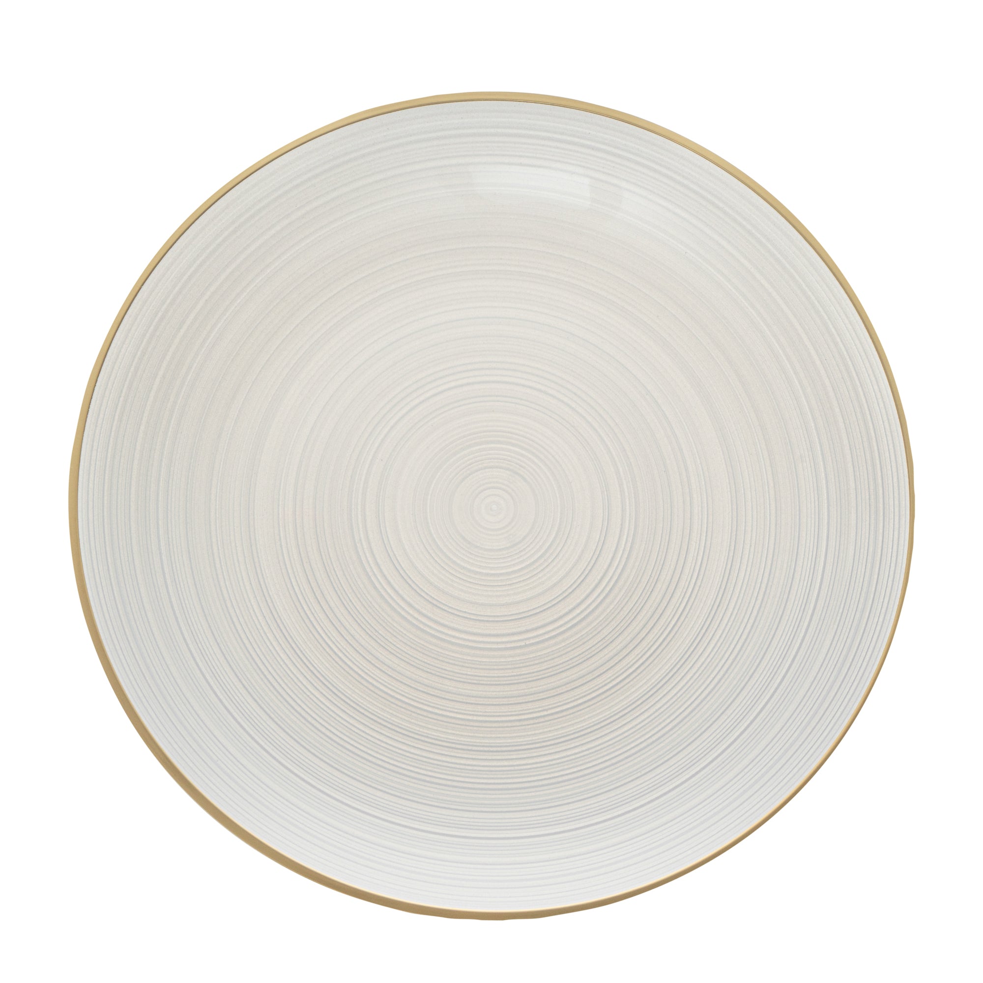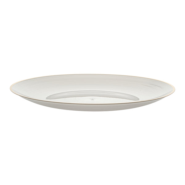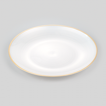 ROUND WHITE TRANSLUCENT PLASTIC GOLD-RIMMED PLATE - RIPPLED