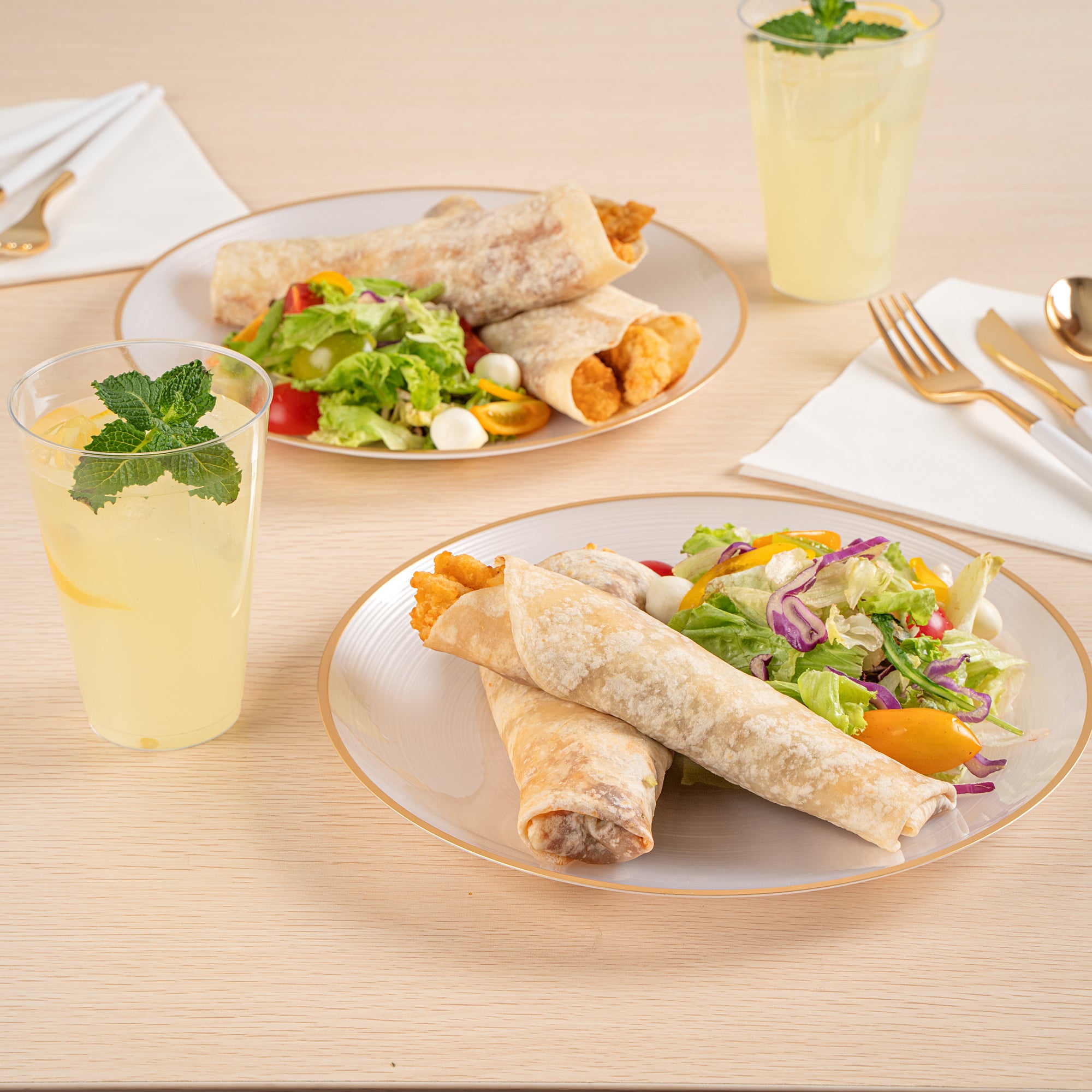 Create memorable dining experiences with elegant convenience. The Crystal Design Plate Collection Secure-Grip Disposable Plates feature a rippled surface that enhances grip, ensuring secure handling during busy events and reducing the risk of spills. The intricate crystal design elevates any table setting, making these wedding plates ideal for upscale events and special occasions. Crafted from durable plastic, these plates withstand heavy use, making them reliable plastic plates for catering services. The disposable design of these plates enables fast cleanup, saving valuable time and effort after events. With a translucent white color, these plates complement various table settings. Measuring 10.1 inches by 10.1 inches, these plates are perfect for accommodating a variety of dishes. Upgrade your event with these elegant disposable plates, designed to impress your guests. Each order includes 100 Crystal Design Plate Collection Secure-Grip Disposable Plates.