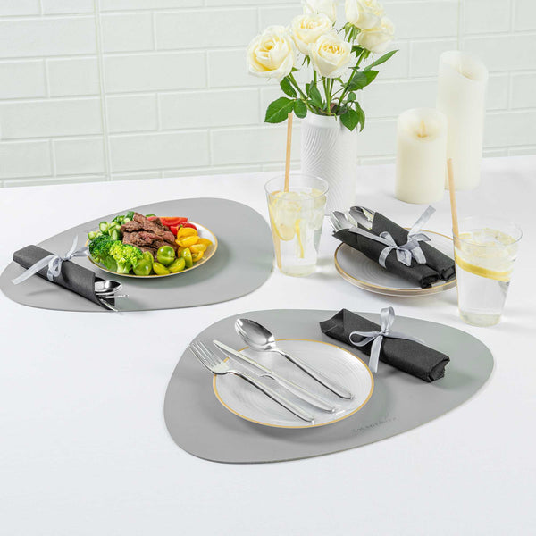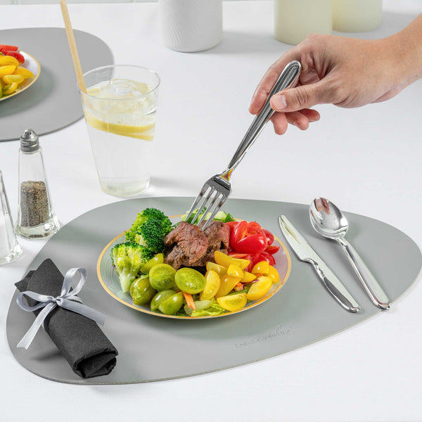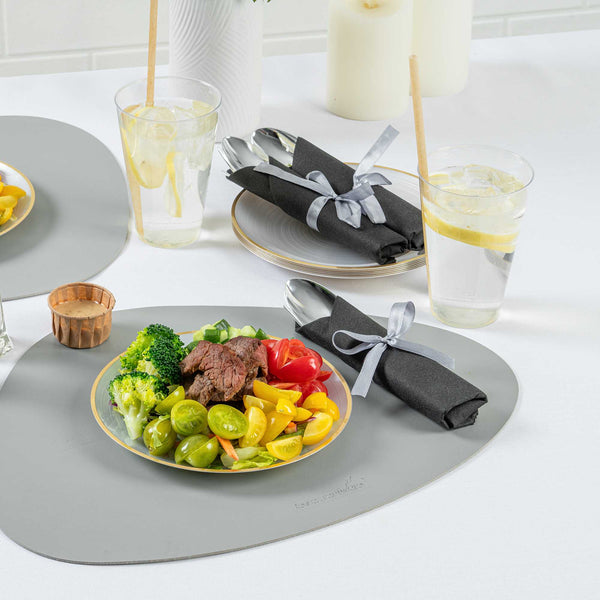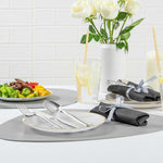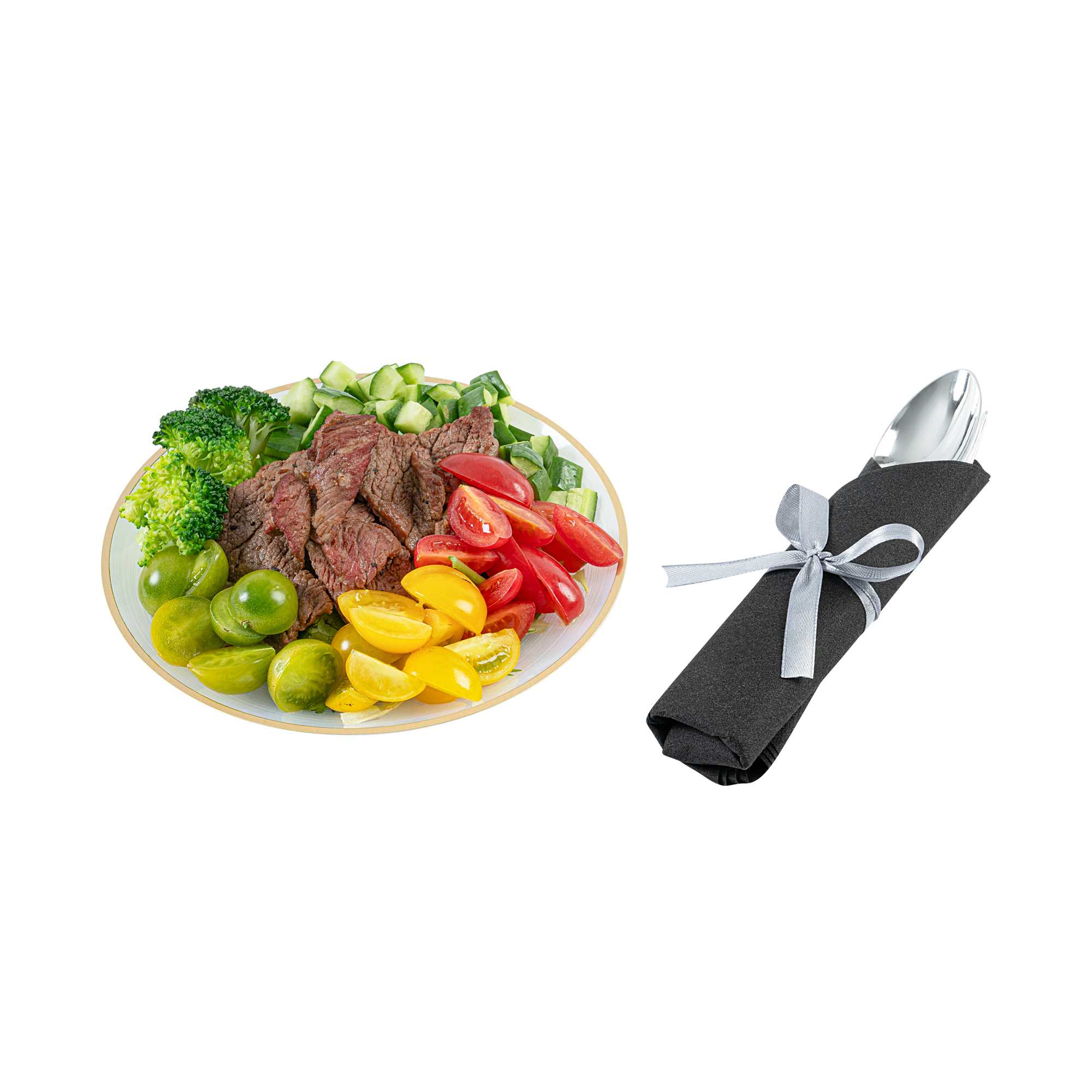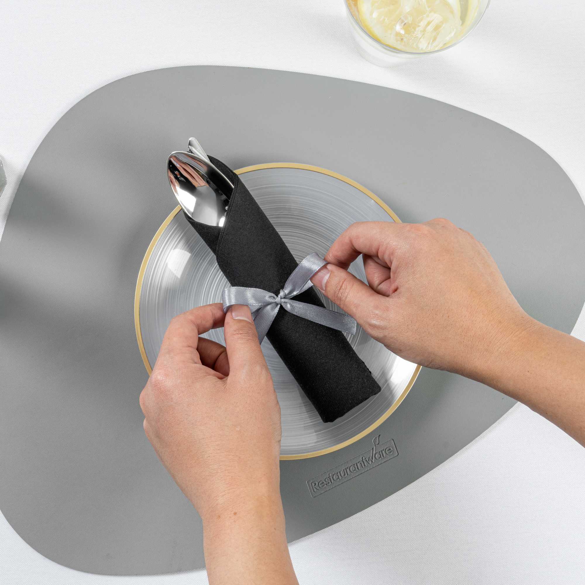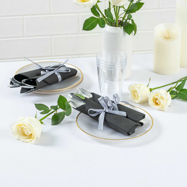 Streamline your event's cleanup with stylish, eco-friendly options. The Argento Silver Plastic Cutlery Set offers a recyclable design that ensures quick post-event cleanup, making it an efficient choice for busy caterers and event planners looking for a plastic cutlery set. Constructed from high-quality plastic, this disposable silverware set is cold food friendly and perfect for serving a variety of dishes, from appetizers to desserts. With its multipurpose use, it's suitable for cold, wet, and dry foods, allowing versatility in menu planning. Each set includes a napkin tied with a ribbon, creating an elegant presentation that enhances guest experience. Measuring 7.25 inches in length, 2 inches in width, and 1.75 inches in height, these cutlery sets are easy to handle and store. Provide your guests with convenience and style while promoting sustainability with this recyclable plastic cutlery. Each order includes 100 Argento Silver Plastic Cutlery Sets.