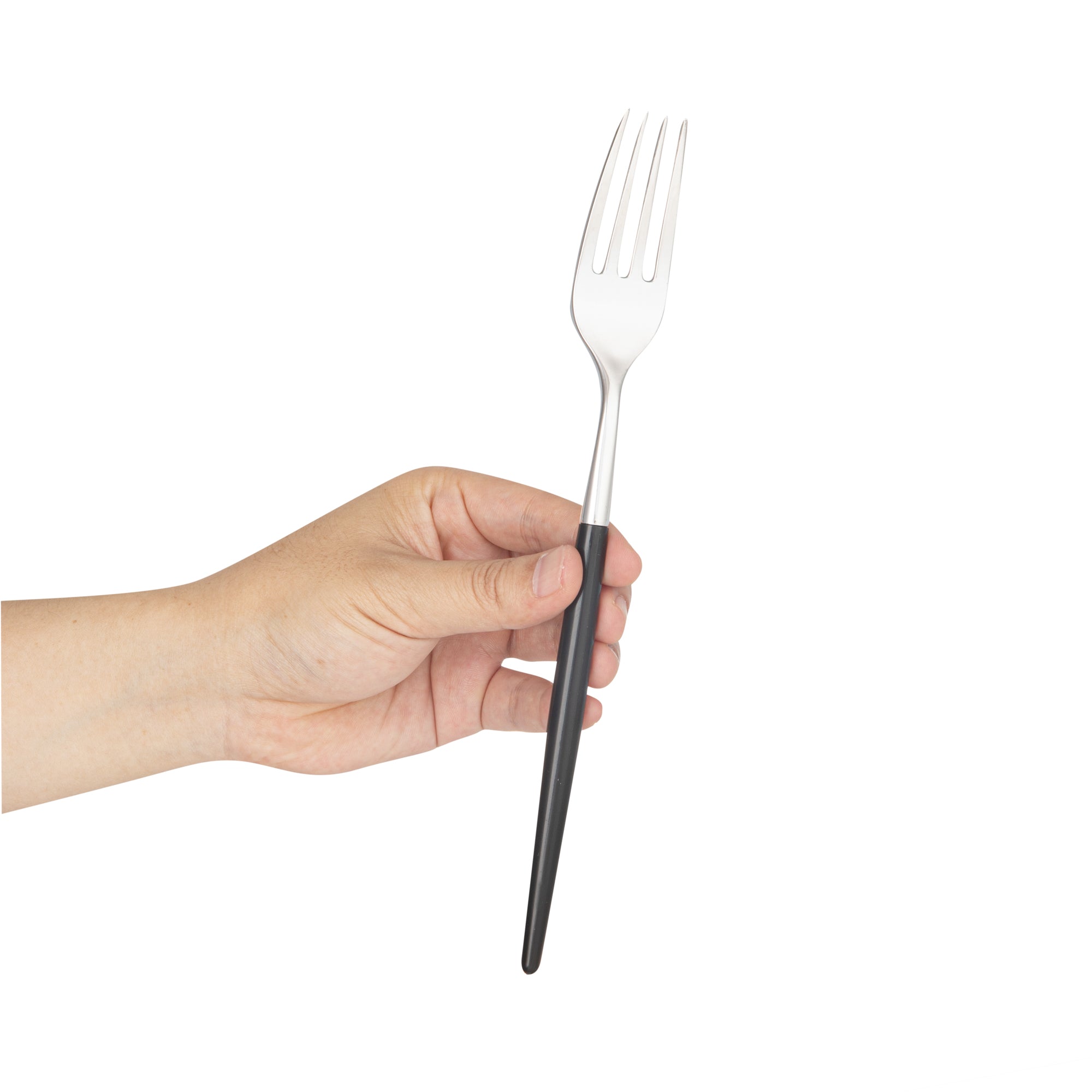 SILVER PLASTIC FORK - WITH BLACK HANDLE