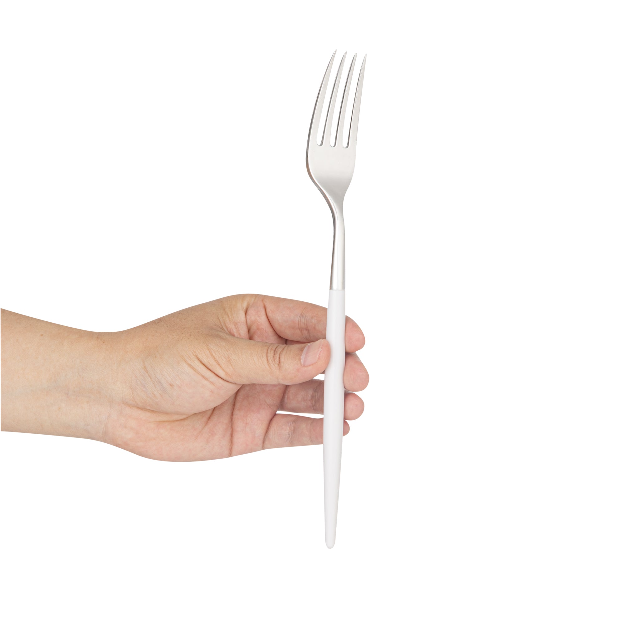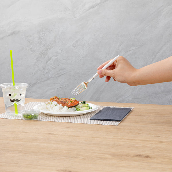 SILVER PLASTIC FORK - WITH WHITE HANDLE