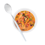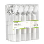 Scoop your foods easily with our Moderna Silver Plastic Spoons. Crafted from durable polystyrene plastic, these plastic spoons are designed to withstand the rigors of scooping various food items. These plastic utensils are, ensuring no harmful substances will leach into your meals. With a remarkable ability to withstand temperatures of up to 167F, these silver spoons effortlessly accommodate hot and cold dishes. Plus, these silver spoons with white handles are recyclable, providing an environmentally friendly option that helps reduce your carbon footprint. For added convenience, these fancy plastic silverware pieces are specifically designed for easy disposal, making them an excellent choice for large events. With their sophisticated silver and white finish, these fancy plastic utensils add a touch of elegance to your tablescape, elevating the overall aesthetic appeal of your dining setting. Each utensil in these party cutlery sets measures 7.75 inches long. Shipped in a 500 count box.
